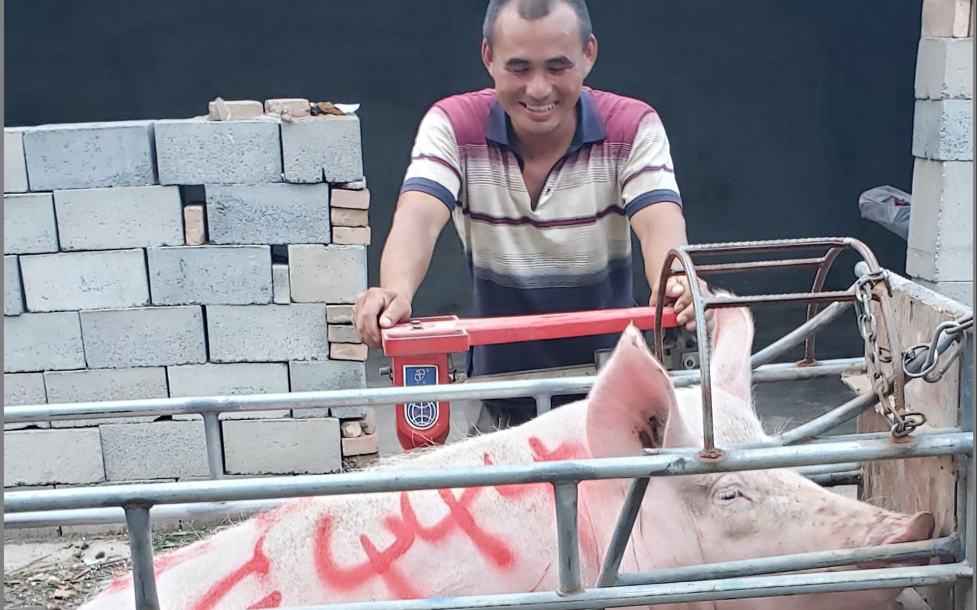 6月15日,养猪场的3头猪出栏。扶贫工作队帮郭龙刚把猪运到桃城区城东屠宰场检验屠宰,将400余公斤猪肉送到冀州、故城和武强三家供电公司的职工食堂。7月6日,4头猪出栏,工作队又帮郭龙刚把500余公斤猪肉销往了故城、安平和武强三家供电公司的职工食堂。目前,郭龙刚的养猪场已扩展到占地1亩、猪存栏85头。