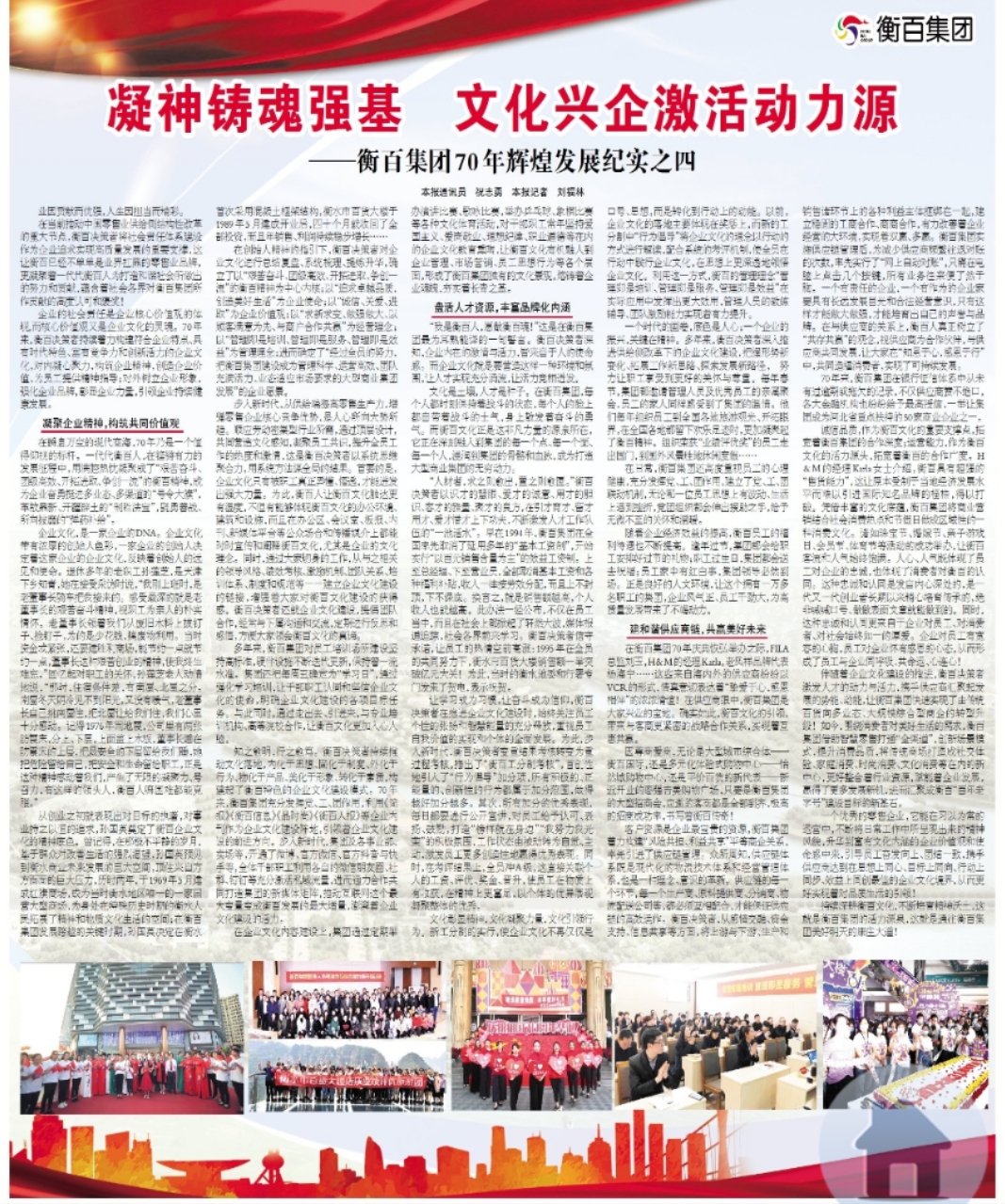伴随着企业文化建设的推进,衡百决策者激发人才的动力与活力,携手供应商汇聚起发展的势能、动能,让衡百集团快速实现了由传统百货向多业态、大规模综合型商企的转型升级!如今,围绕消费者对美好生活的需求,衡百集团借助智慧零售打通“全渠道”,创新场景模式,提升消费品质,将传统商场打造成社交体验、家庭消费、时尚消费、文化消费等在内的新中心,更好整合着行业资源,赋能着企业发展,赢得了更多发展新机,进而汇聚成衡百“百年老字号”建设目标的新基石。