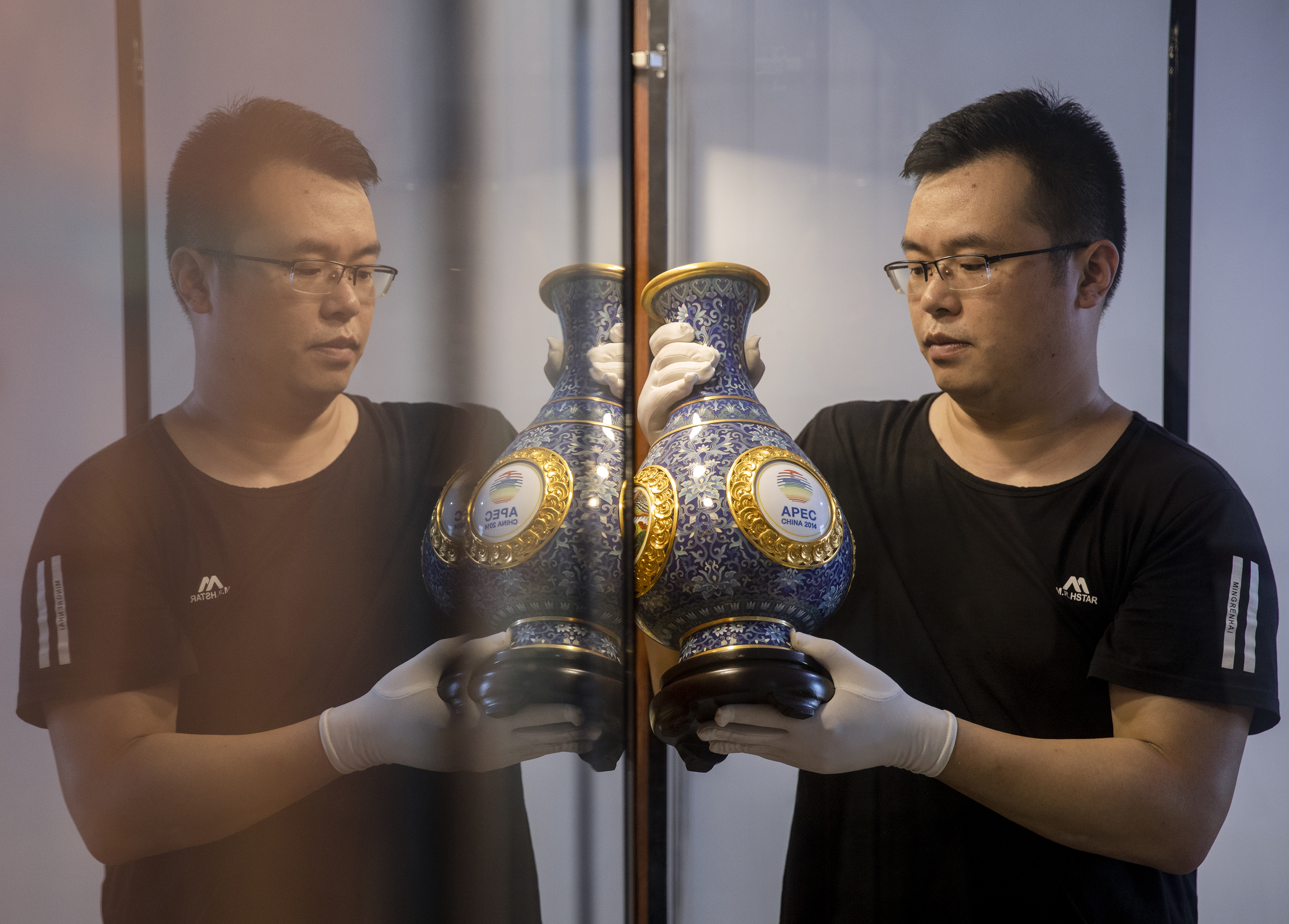 衡水市景县龙华镇铜胎画珐琅手工艺人在检测成品。
