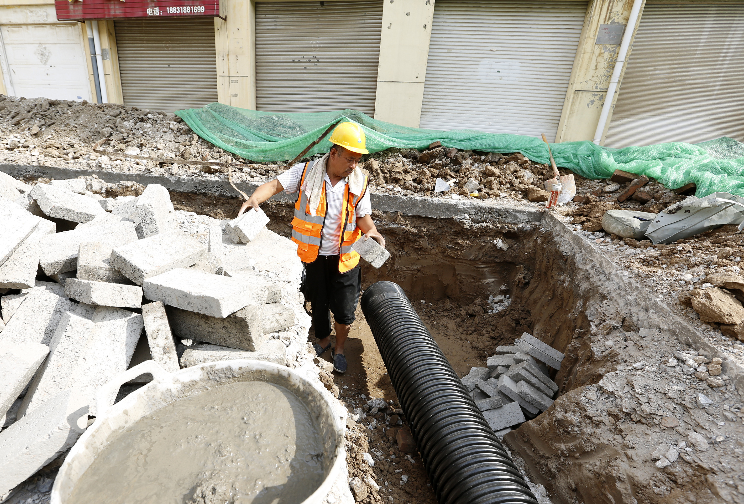 衡水市桃城区广厦家园小区老旧小区改造雨污分流工程施工现场。