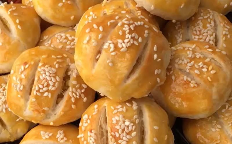 5. 将圆饼放入烤箱或空气炸锅中烤制,视具体情况决定烤制时间及温度;待烤好后取出,就可以吃到会拉丝的老婆饼了。