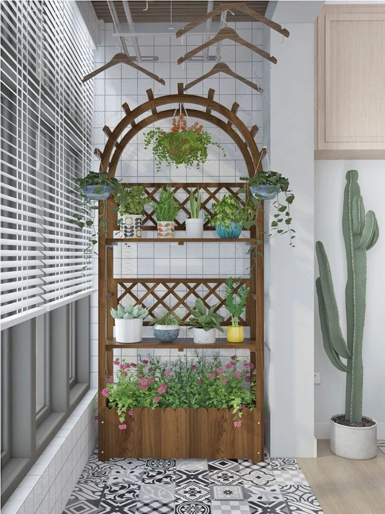 家是温馨的港湾,又何常不是梦开始的地方。将你家的阳台打造成空中小花园,在阳台空间放置你喜欢的绿植,绿色环绕之下,整个空间都会充满生机,如同梦想中的样子。这个植物架,可以有序地放置你的绿植花朵。闲暇时,可以在小花园浇水施肥,打发无聊的时间。劳累时,也能在它们的陪伴下休憩思考,或是躲避纷扰的困扰。