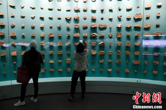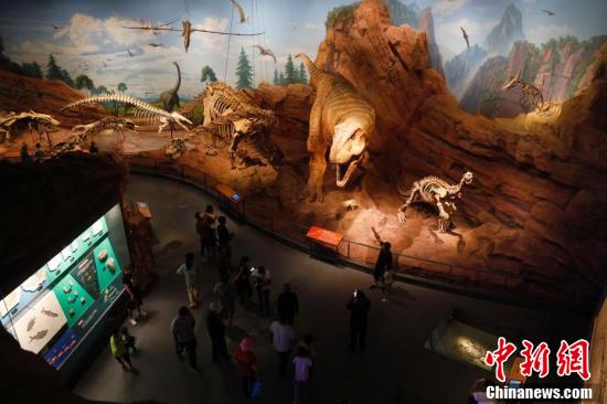 8月10日,云南省澄江市,市民在化石地自然博物馆内参观拍照。当日,云南澄江化石地自然博物馆正式对公众开放。2012年,澄江化石地被列为世界自然遗产。(中新社记者 李嘉娴 摄)