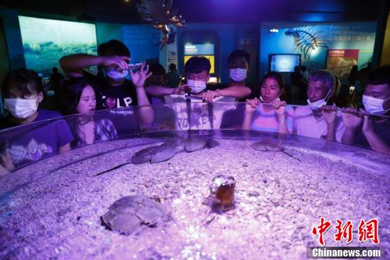 8月10日,云南省澄江市,民众欣赏“活化石”海鲎。