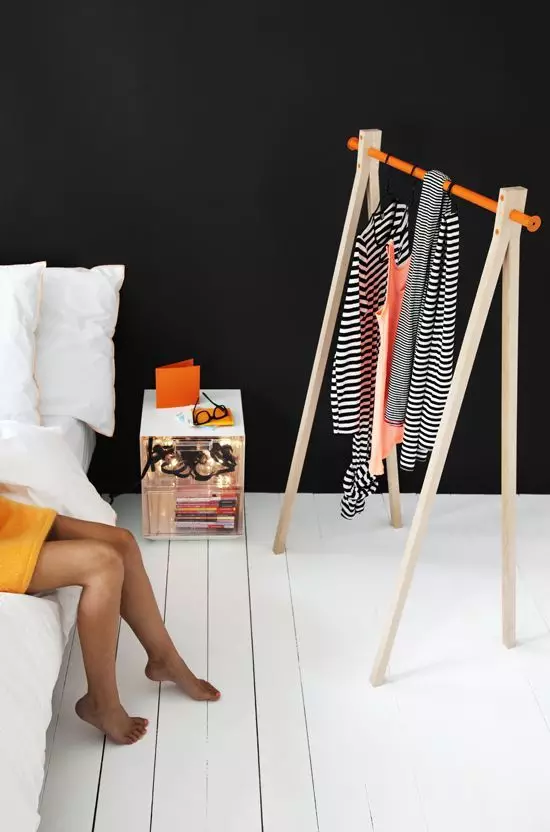 我们还可以像北欧人一样,准备一个梯子靠墙边,简洁不占地,衣服随手就搭。