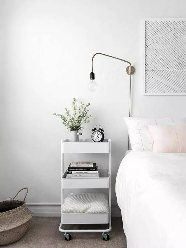 床头有鲜花、有爱看的书、有暖暖的灯......理想中的卧室应该是这样的,但往往现实是:床头有一堆不知道放哪里好的衣服,放椅子上。