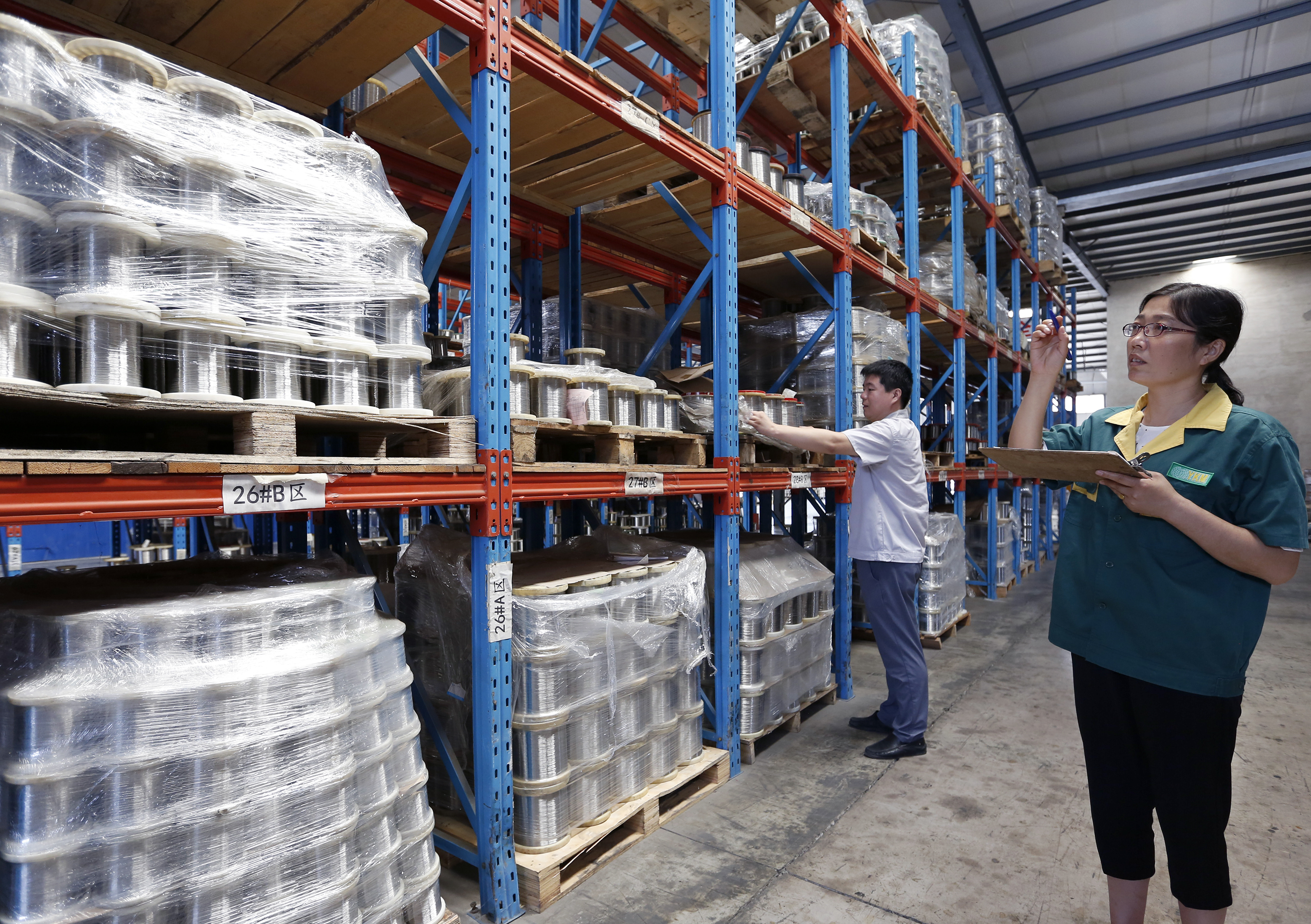 安平县河北英凯模金属网有限公司仓库管理人员正在清点货物。