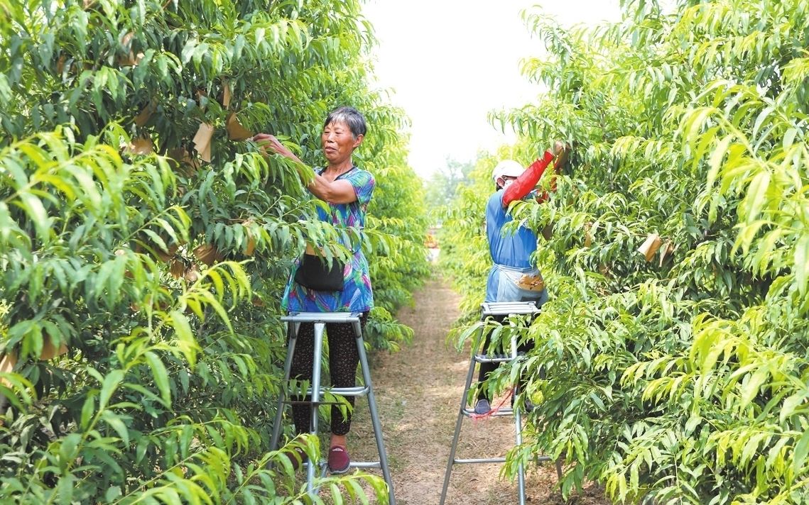 一排排果树,绿叶葱茏,其间,躺着套袋的乒乓球大小的桃子,这是位于阜城县崔家庙镇张家桥村的创达生态农业园内正在生长的冬桃。10月中下旬,这些冬桃就可以上市了。在果园里打工的张文河,一边忙活着给桃树疏枝,一边说:“你可别小看这些桃子,我们今后的好日子,全靠它了。”
