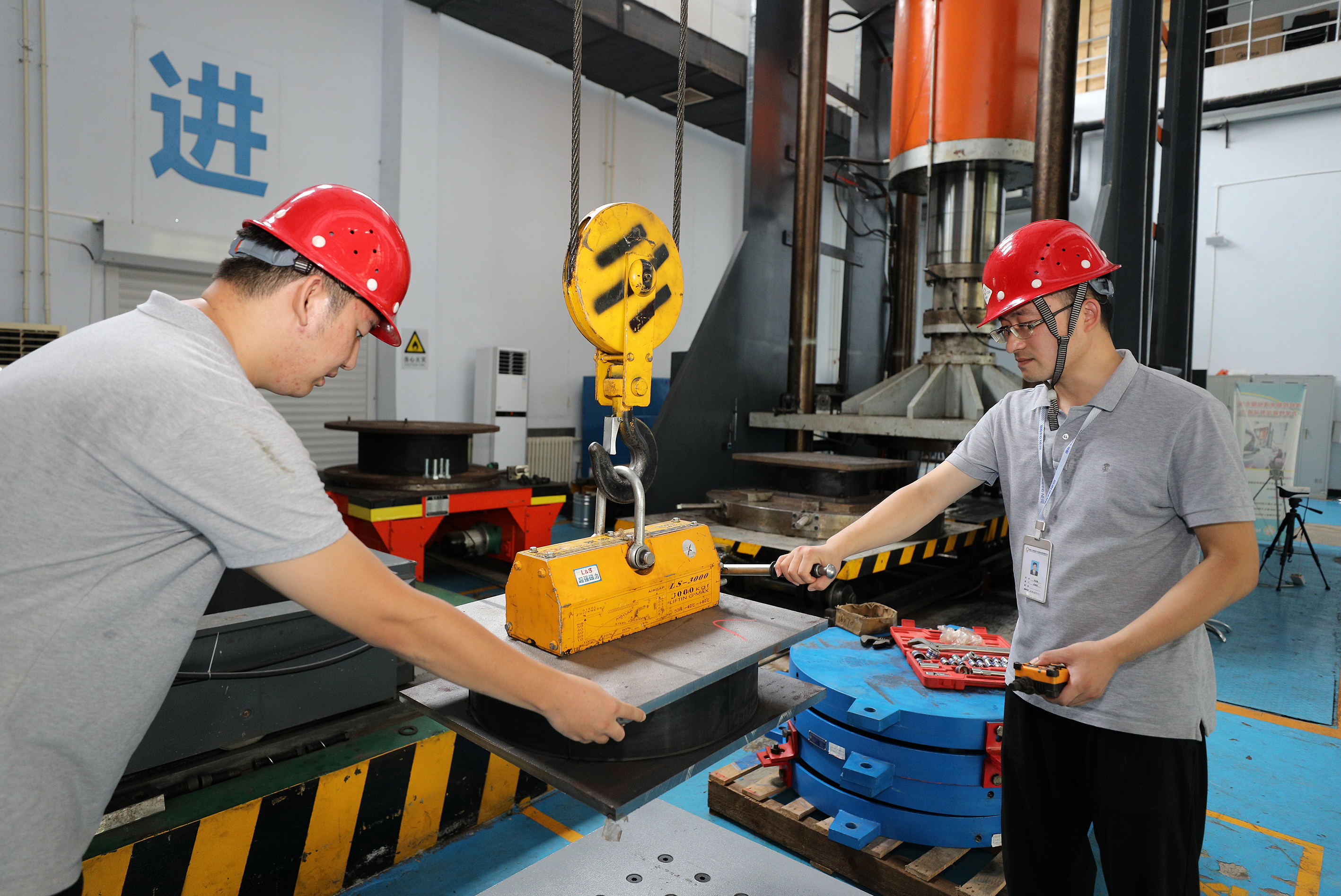 工程橡胶国检中心工作人员正在做橡胶支座的竖向压缩刚度实验。