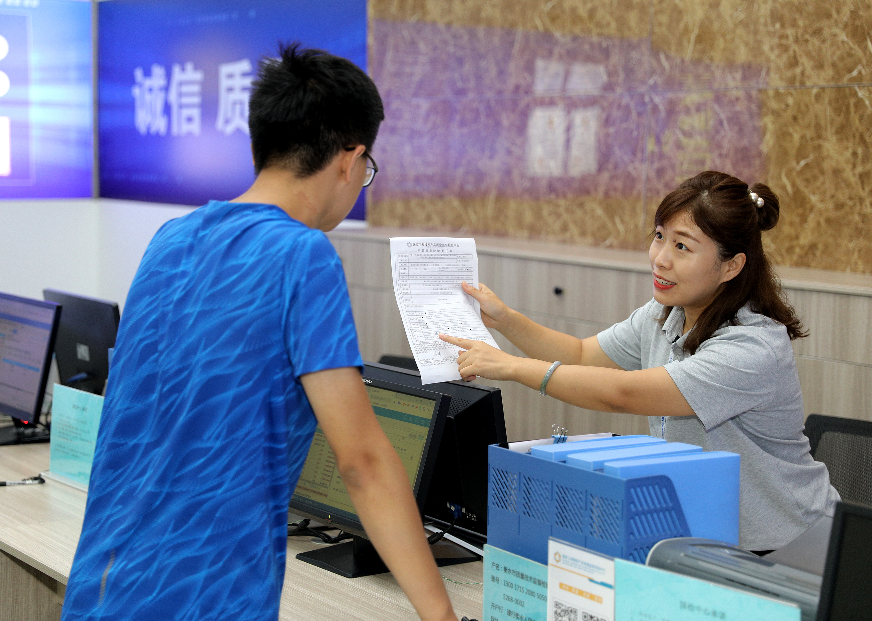工程橡胶国检中心服务平台工作人员为办事群众答疑解惑。
