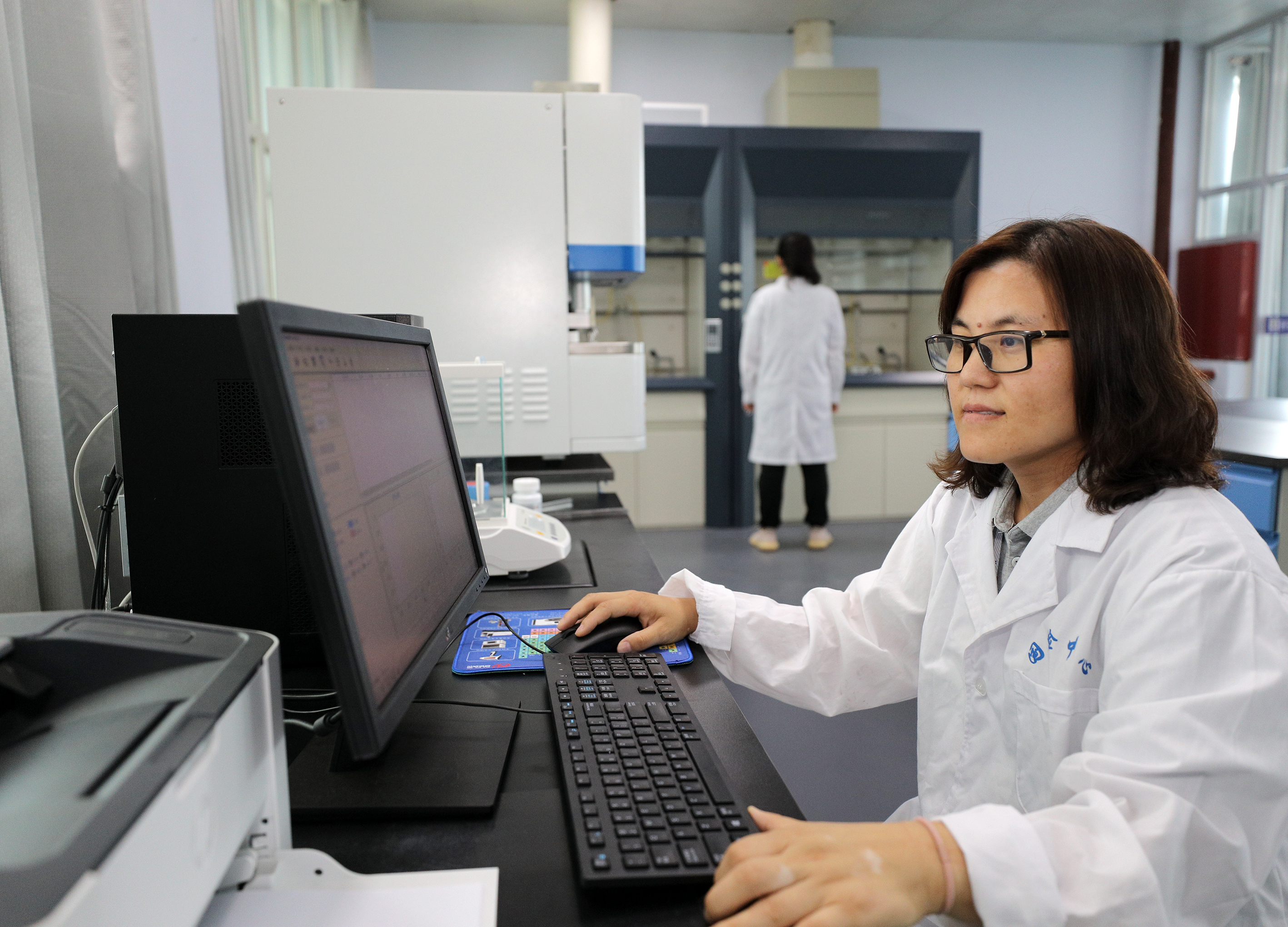 工程橡胶国检中心工作人员正在做碳硫分析检测实验。