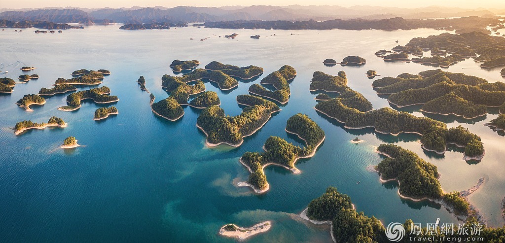 5、浙江千岛湖的绿水红叶。秋天的千岛湖蓝天白云,绿水红叶,1078个岛屿似一只只翡翠玉盘,仿佛远离尘嚣的世外桃源。在150公里环岛绿道上穿山越村骑行,湖光山色尽收眼底,令人心旷神怡,公路上既有便捷的自驾骑游服务点,还有散落的湖畔农家乐,天气和风景一切刚刚好。