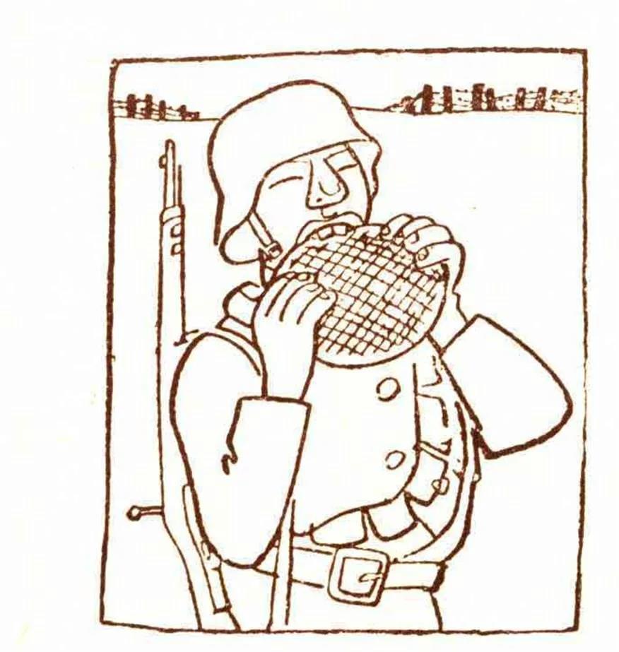正在吃光饼的中国士兵