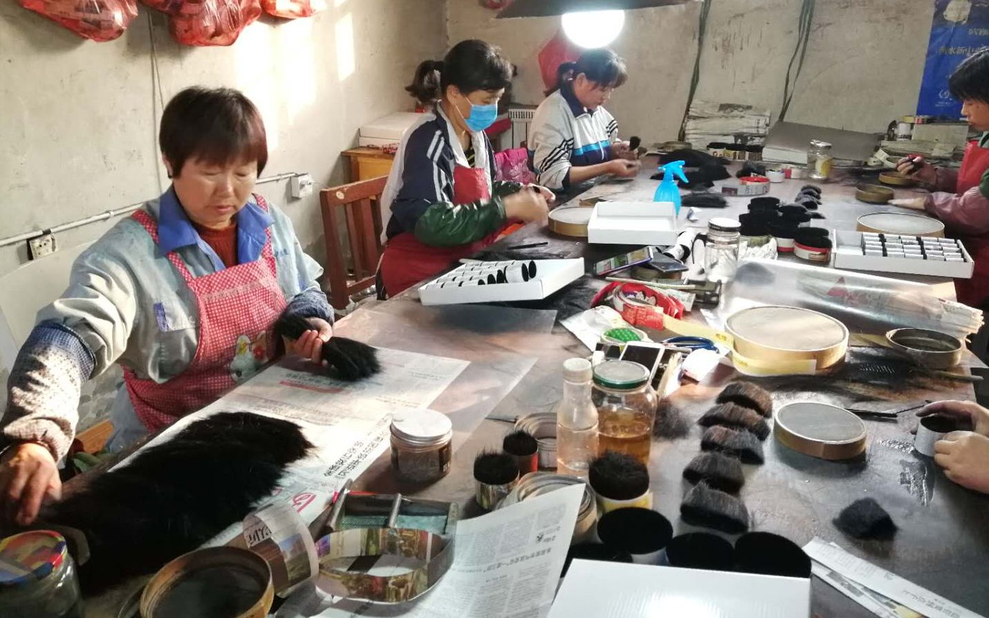 “2018年是我突破最多的一年,打开了东北市场、西北市场,开发了一些新产品,上了中央电视台,最重要的一步就是‘走出去’,把侯店毛笔卖到欧洲去。”1969年出生的孙占彪已经在制笔行业摸爬滚打了15年,现在是河北省毛笔制作大师、中国文房四宝会会员。