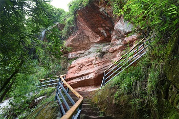 穿过沐源路来往的车流,由山地公园入口向上攀越,林家岩蓊郁的绿色让人神清气爽。3700米的山体步道,一路连起森林、茂竹、溪流、瀑布、山岩、花草等景观,创造听觉、嗅觉、视觉型保健公园。同时,公园陡峭处还安装有护栏等设施,建成了廊亭和登山小路,以尊重山体原有地貌,铺石造景,丰富植物群落,营造步移景异的登山景观,充分满足休闲需求。