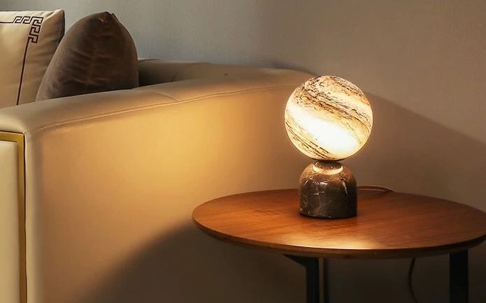 从外形来看,它就像一颗旋转的星球,在静谧的夜晚给人一种安逸之感。据了解,这盏台灯有地球款、土星款、月球款和奶白球款。它散发出柔美的灯光,让家居空间具有现代感和艺术感。同时,大理石的底座,又让这盏台灯极具质感。