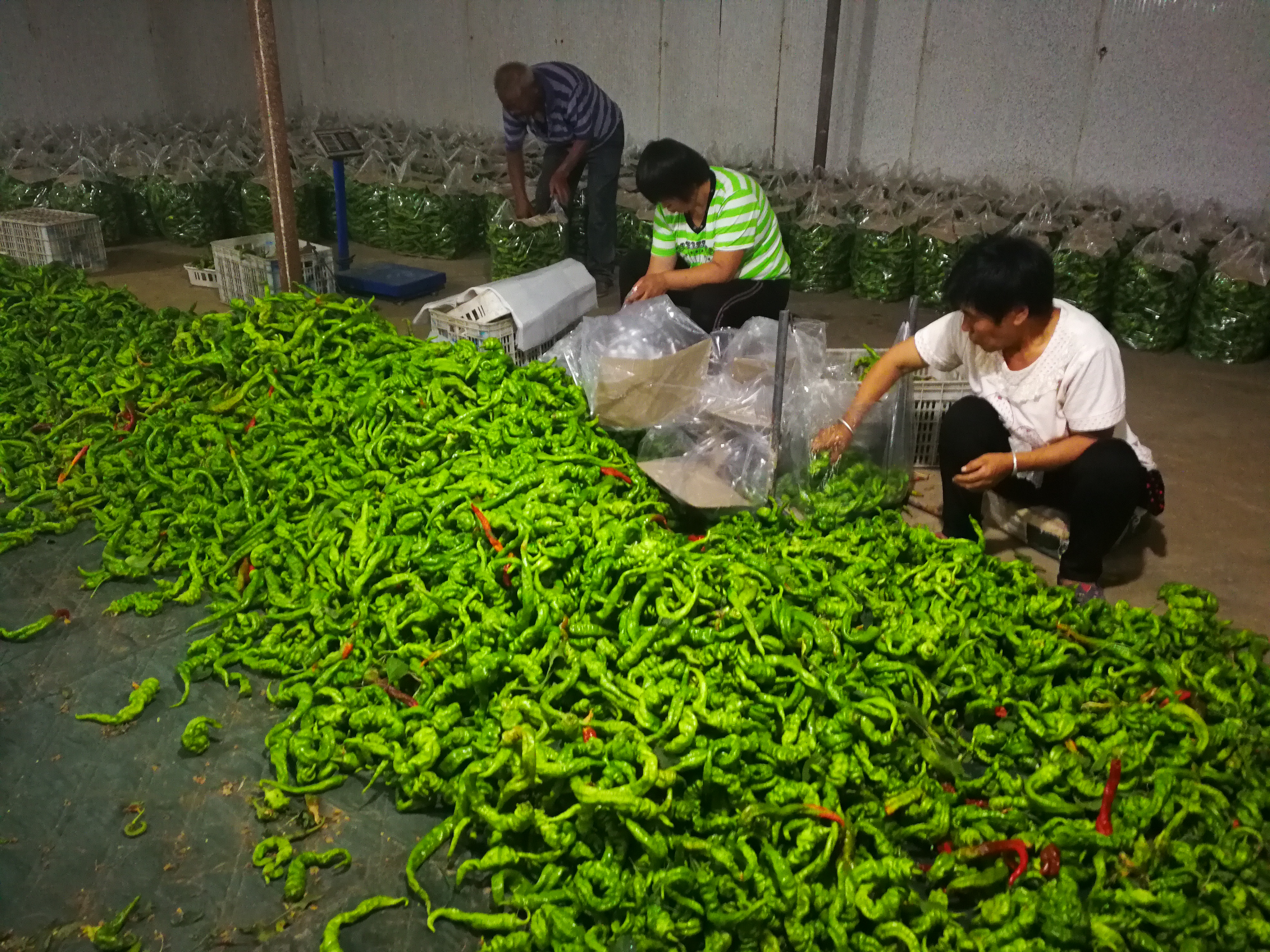 分拣、装袋螺丝椒
