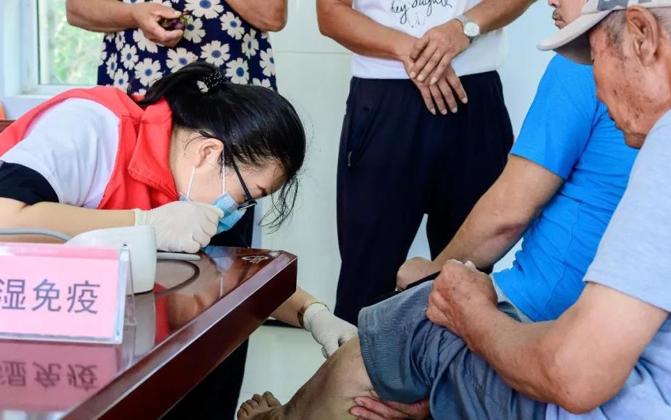 义诊现场,前来寻医问诊的村民络绎不绝。该院医务人员携带听诊器、血压计、血糖仪、心电图等仪器设备,井然有序地为每一名前来义诊的村民进行免费查体、测量血压、测量血糖、做心电图等检查服务,并围绕风湿免疫系统疾病、高血压、冠心病等常见疾病的预防、护理、康复促进等内容对患者及家属进行指导,帮助大家解决在用药、饮食、康复等方面的问题与困扰,传递科学健康的生活方式及专业的医疗护理知识,让健康观念深入人心。对于身体活动不便的村民,医护人员就上门为其进行免费义诊,尽心尽责的答疑解忧,提出治疗建议,受到广大村民的欢迎和赞赏。