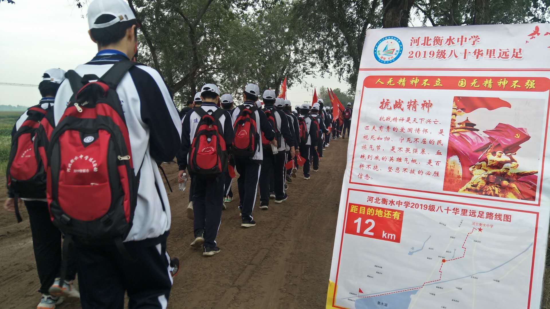 长征精神、抗战精神、两弹一星精神、载人航天精神、抗震救灾精神、改革开放精神、抗疫精神……一路上,10多个展示“中国精神”的展板如一位位英雄和智者,为远足的学子们加油鼓劲,成为他们的精神动力。