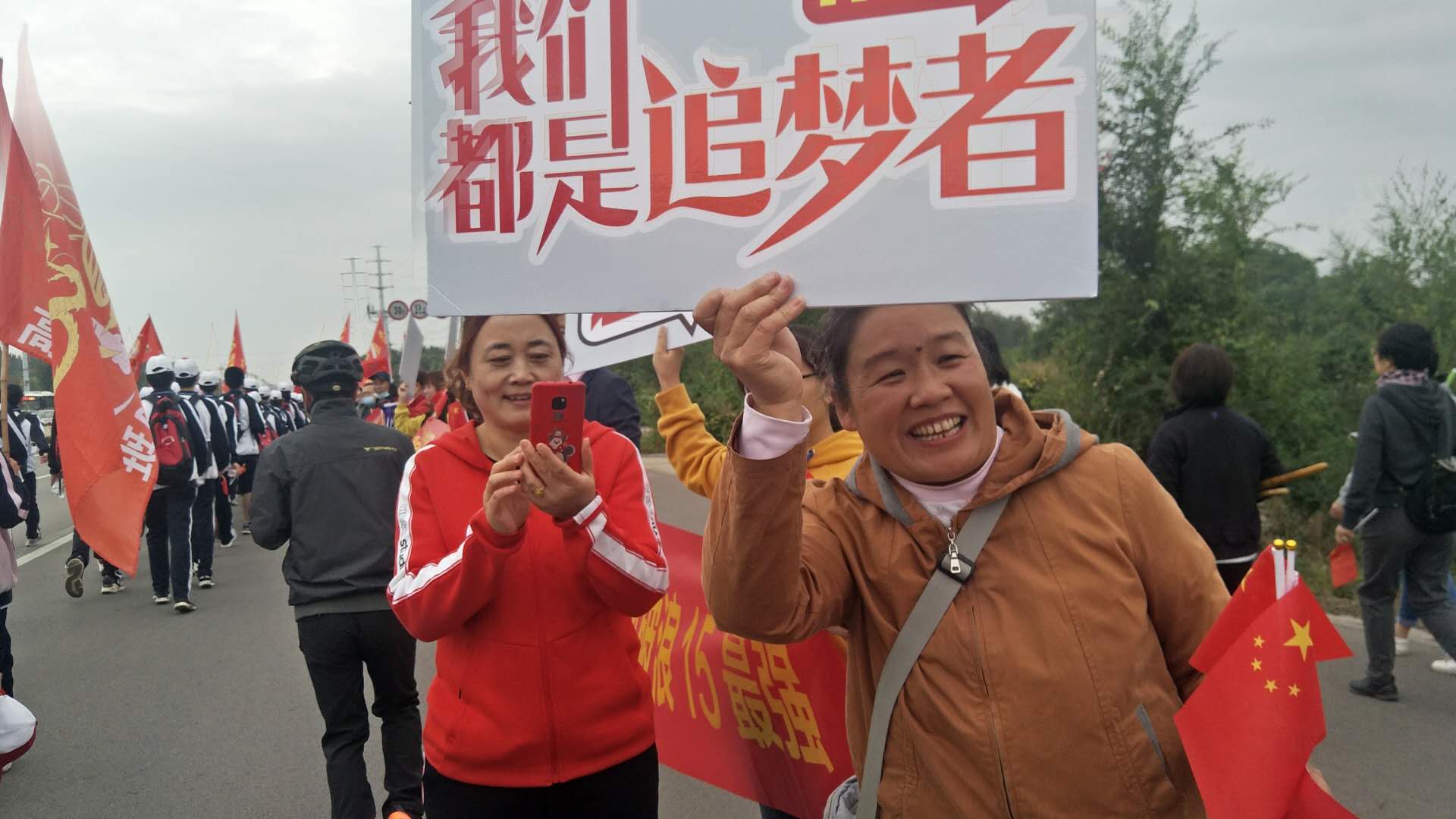 远足路上随处可见展示“中国精神”的展板