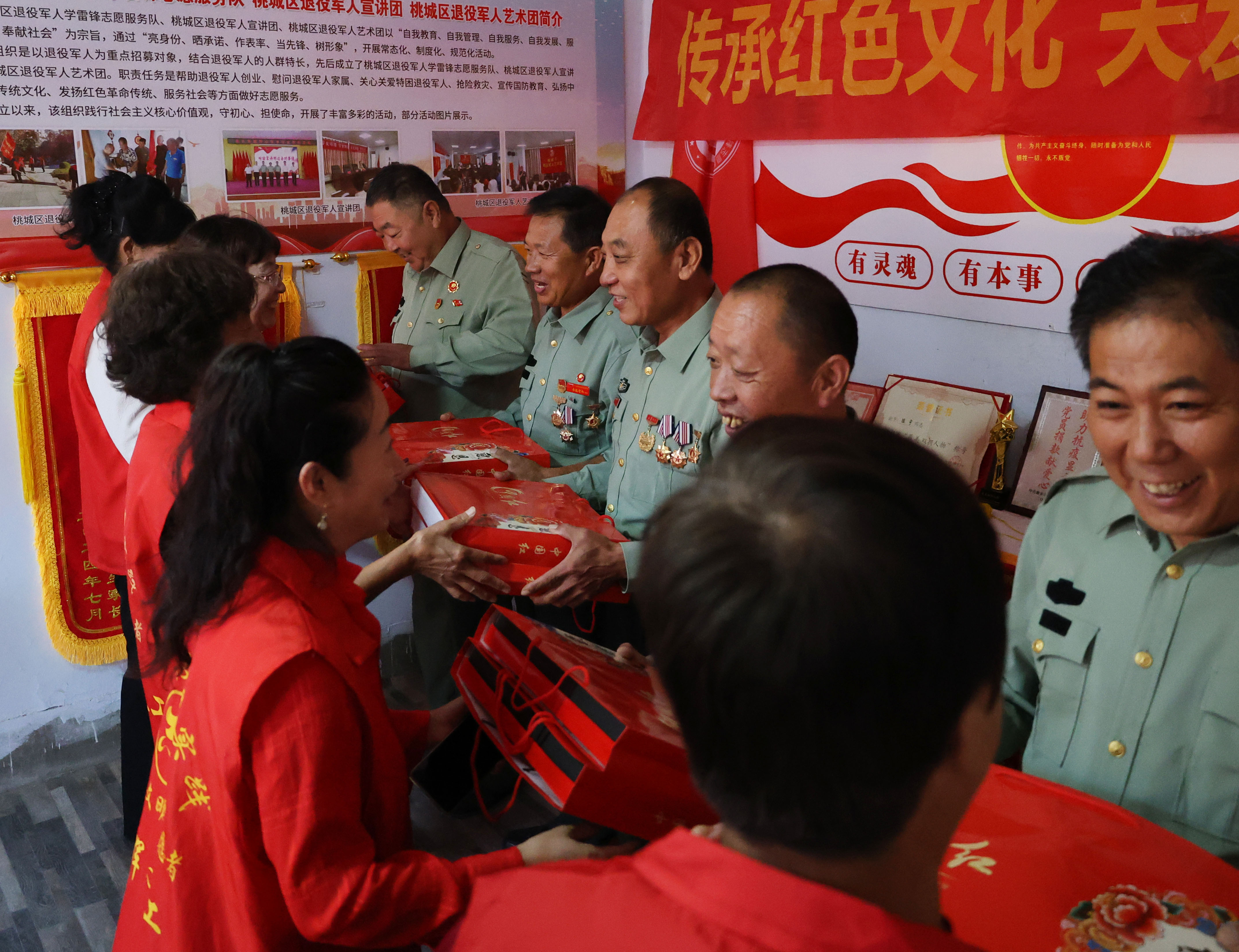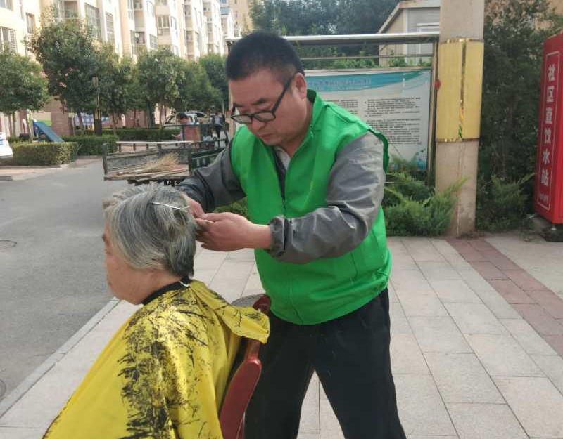 志愿者姜文彬、蒲晓兵、刘风英等身穿绿马甲为老人们义务理发。从事医务工作的志愿者武晓军、冯俊花、曹春花等,为居民们量体温、测血压,耐心解答咨询,讲解常见疾病预防知识。74岁的张素芬老人拉着春晖义工协会助老部部长李志成的手连连致谢。李志成详细询问老人的身体情况、饮食起居,了解有什么困难,需要什么帮助。