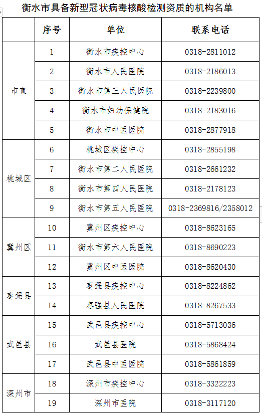 为进一步做好新冠肺炎疫情常态化防控工作,提升检测能力,衡水市持续推进二级及以上医疗机构、疾控机构新冠病毒核酸检测实验室建设进度。截至9月,全市核酸检测机构增至35家,涵盖全市各县市区。