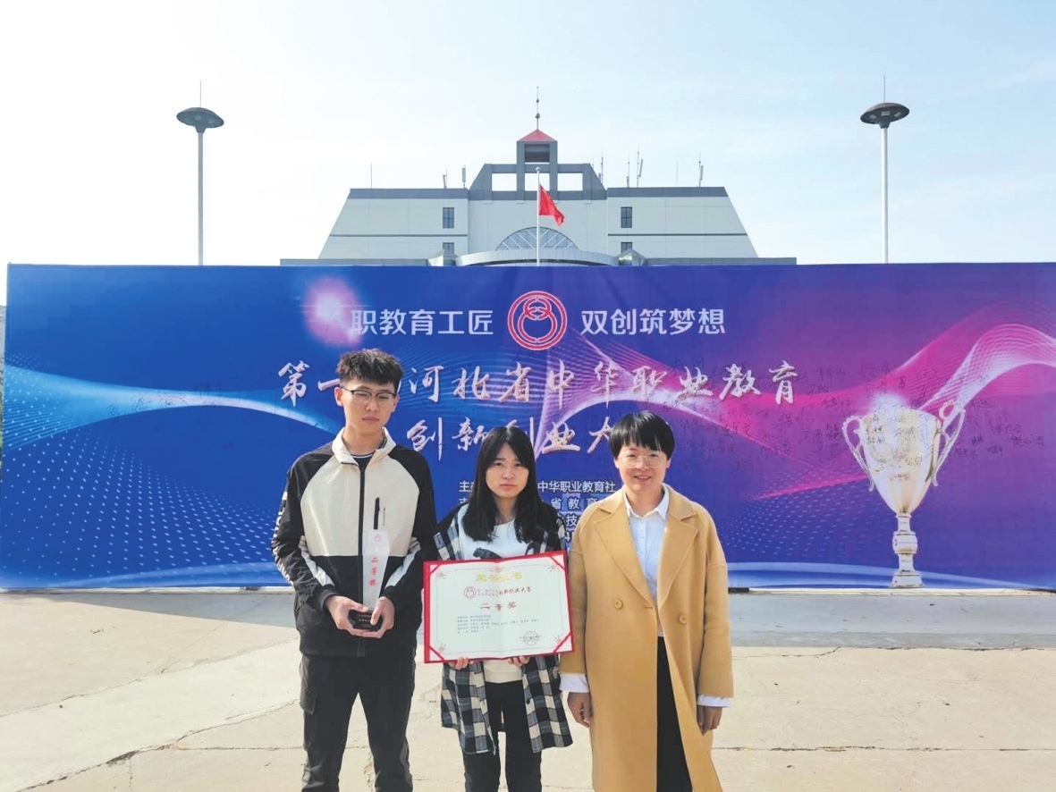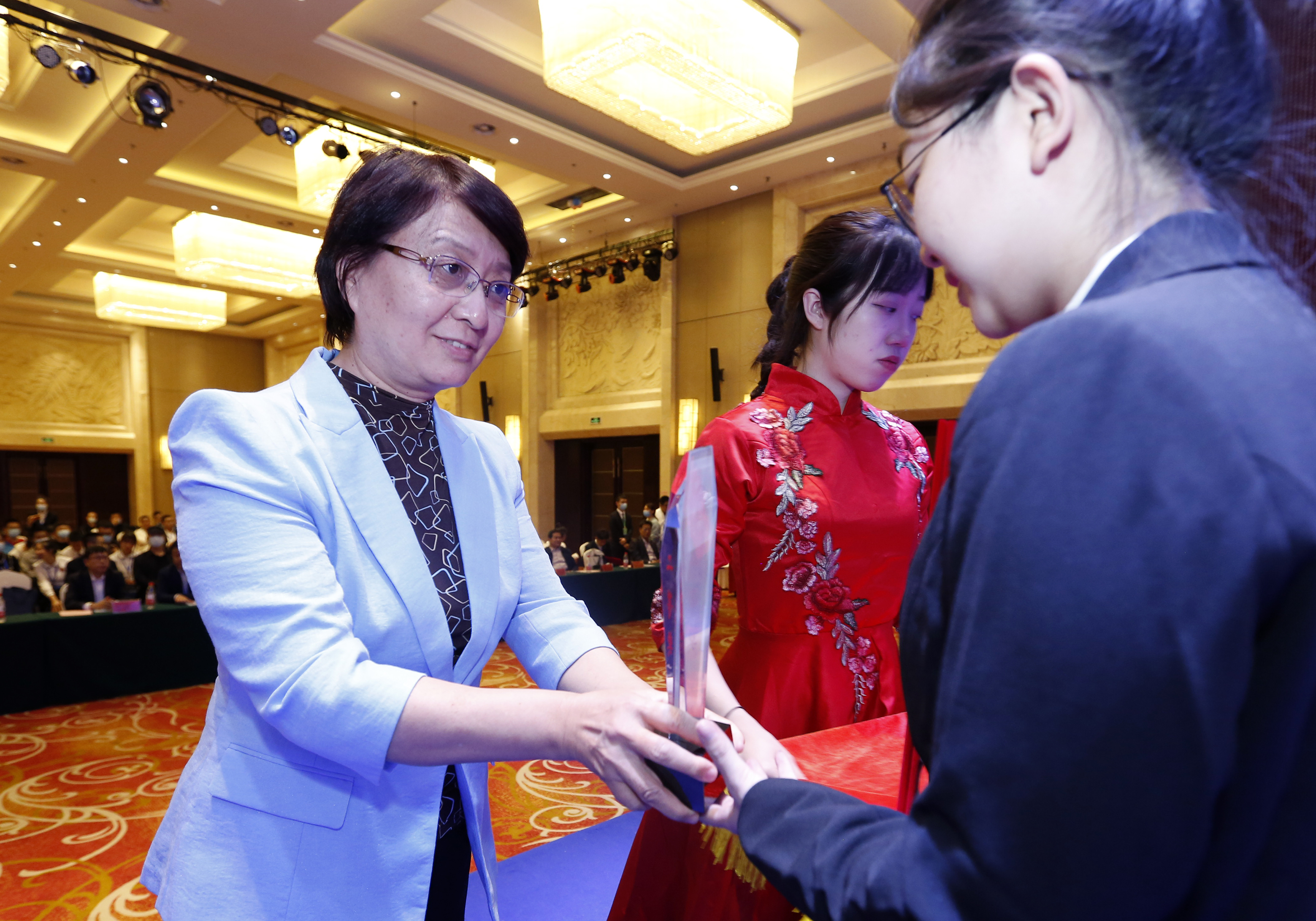 河北中华职业教育社专职副主任崔芳为获奖团队颁奖