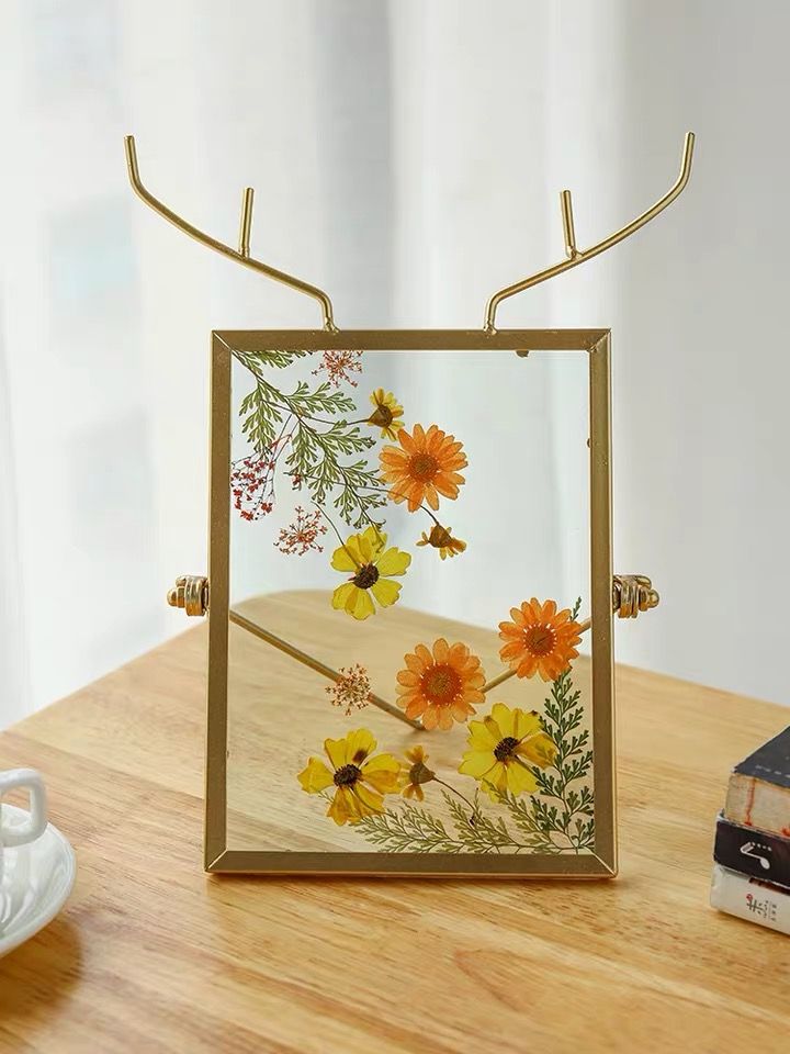 花朵和秋叶都是大自然杰出的艺术品。秋季被风吹落的花枝和树叶除了可以化作花泥,也可以捡拾几片放到画框中。这款画框是金属加玻璃材质,金属表框以麋鹿为造型象征美好,而双面透明的玻璃材质则让花、叶标本更为清晰。快来用它DIY一款属于自己的“秋天印象”吧。