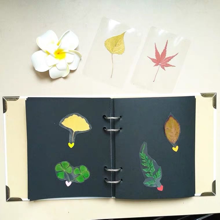 枫叶、银杏、胡桃、白玉兰、西府海棠⋯⋯秋天的落叶丰富多样,形状各异,一个画框装不下,那就来一个标本收集画册吧。这款画册内含45张标本膜,制作方法也不复杂,将透明的标本膜从吸附的白底纸张上揭开,将叶子标本贴在标本膜上,再将标本膜贴在标本册上,用手压平即可完成。拥有它,帮你留住整个秋天。