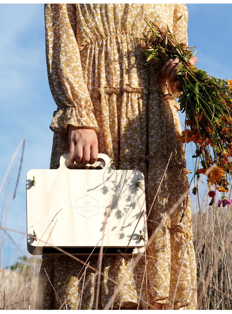 制作干花、树叶标本,你可能还需要一个植物押花器。这款押花器外观看似一个小型公文包,木质材料并配有提手设计,适合户外携带,给你带来押花生活全新体验。另外,它还配备了专业的吸水纸,可以循环使用,让你爱上制作植物标本。