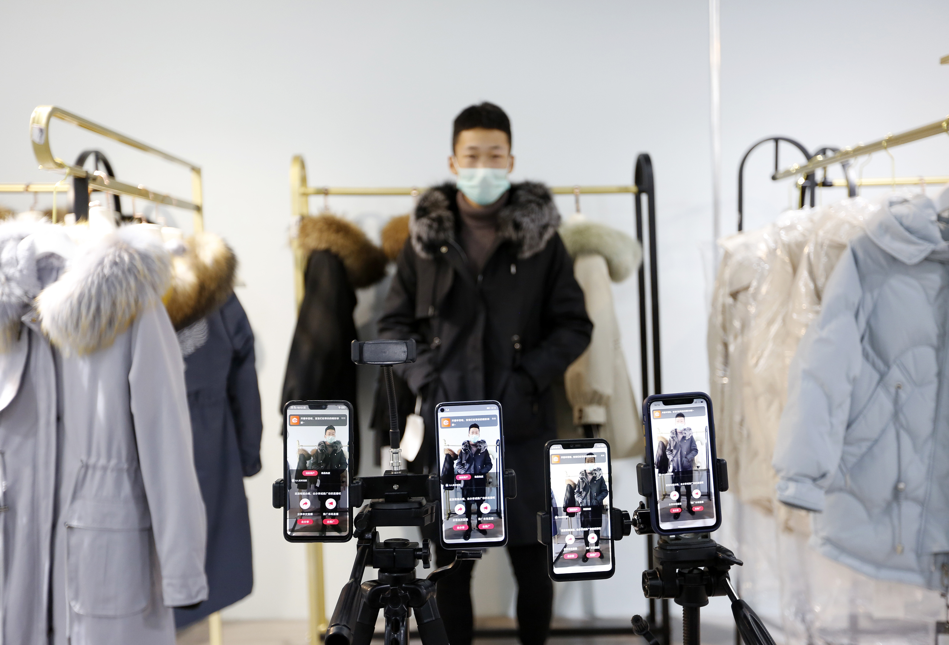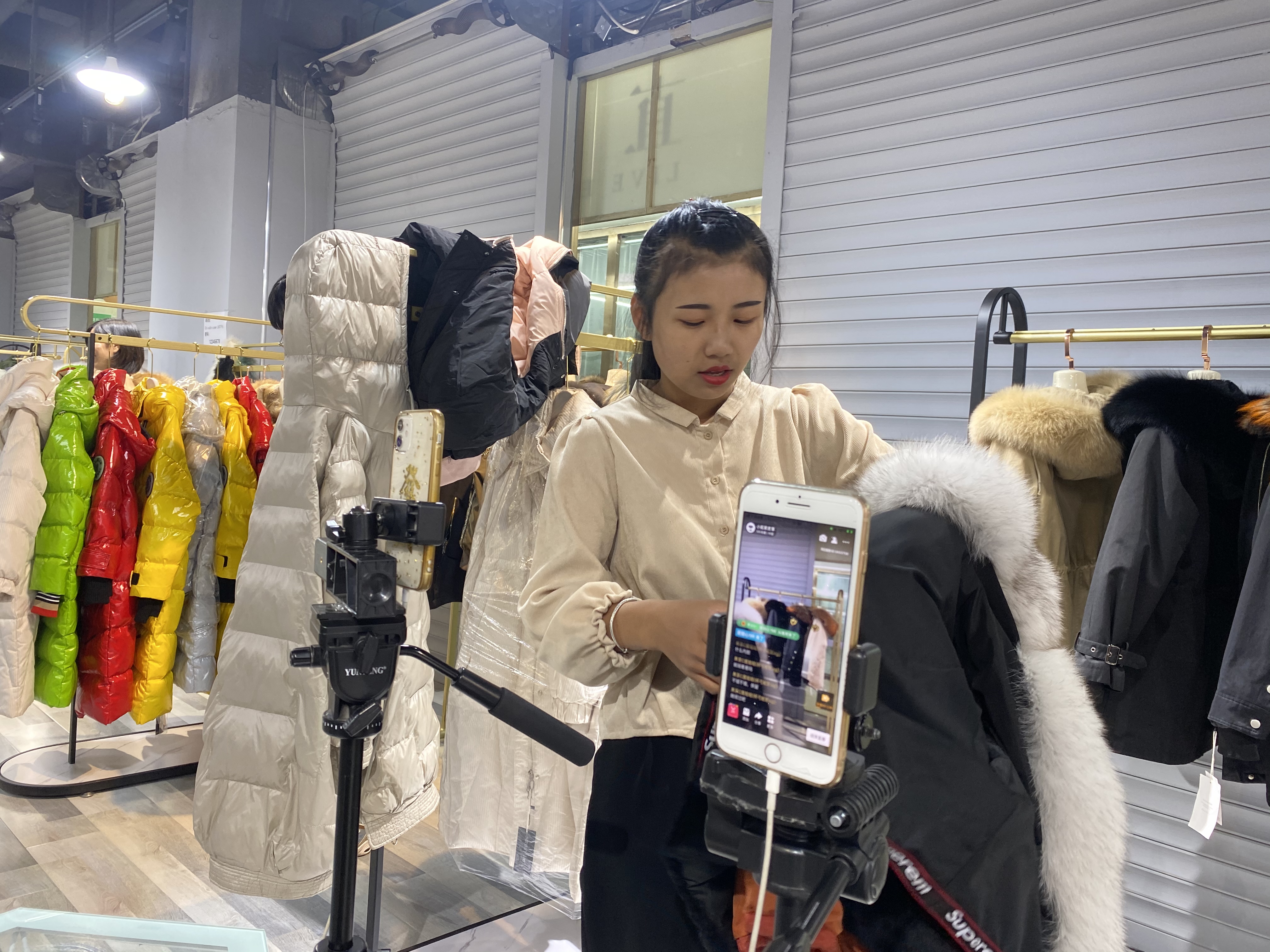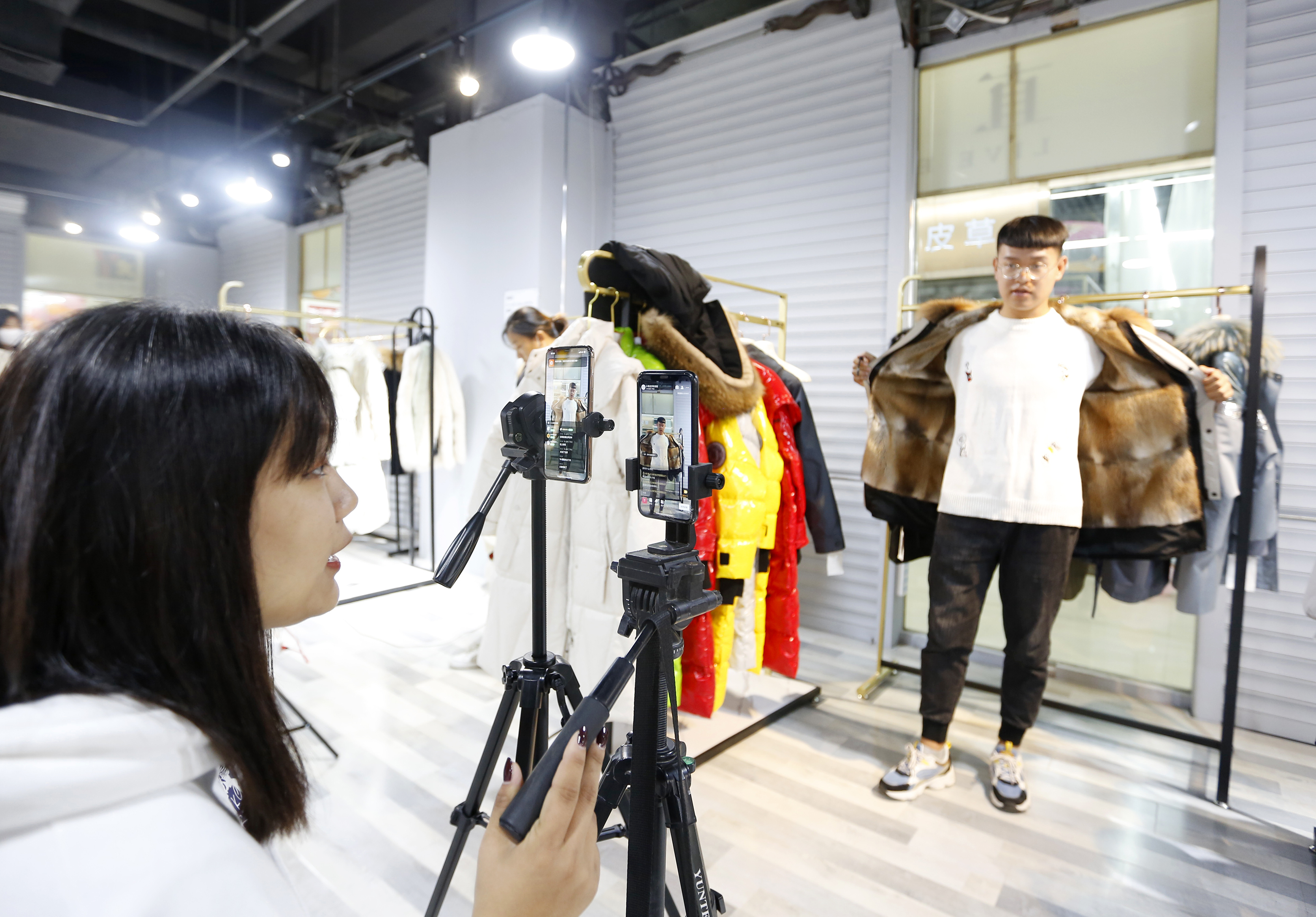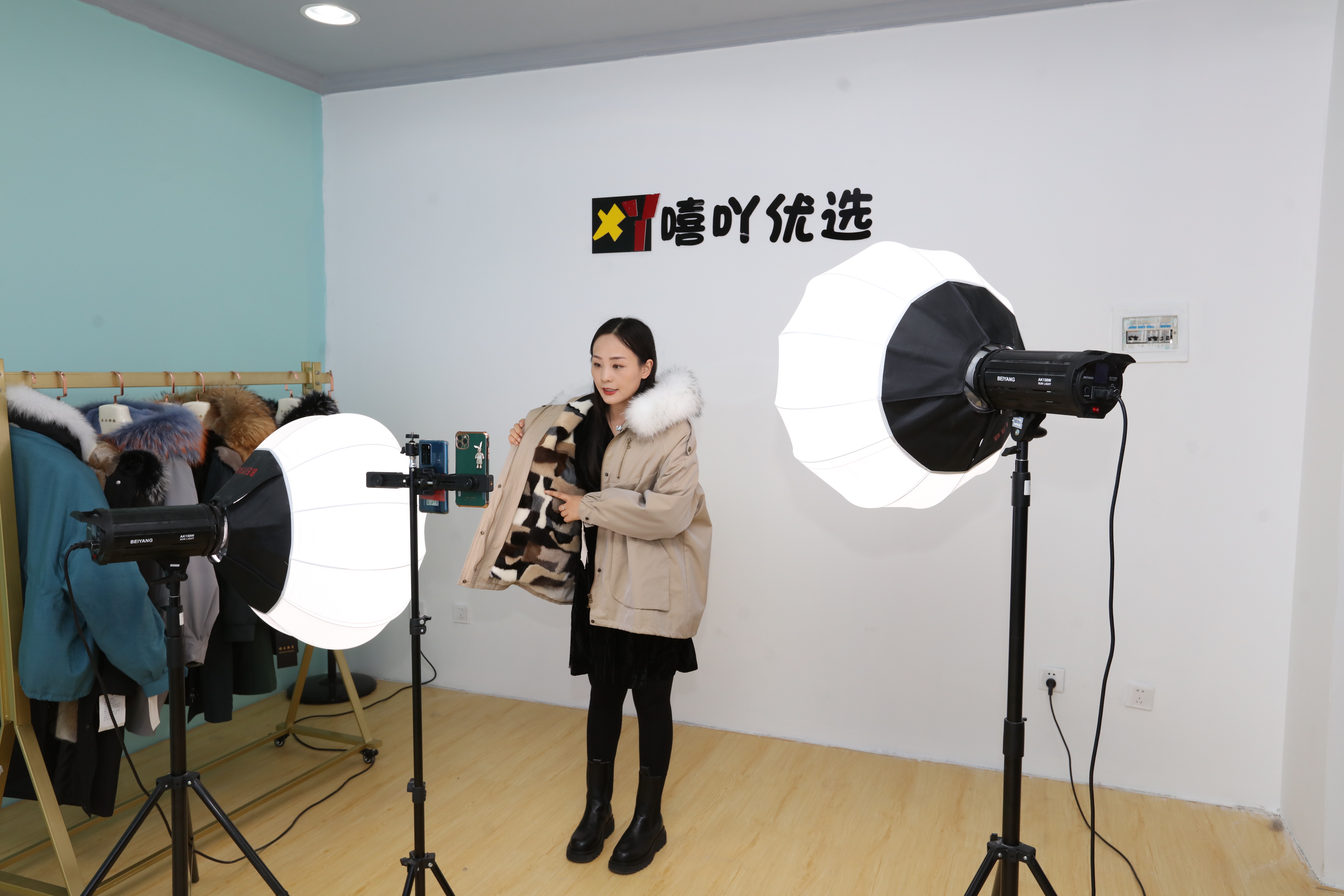 “亲,您看一下这款……”“姐姐,这款派克服是咱们今年的最新款式……”在河北衡水大营镇西亚皮草新城嘻吖优选直播基地内,20多位网络直播忙个不停,羽绒服、派克服、皮草饰品、毛绒玩具等商品,通过他们的直播平台销售到全国各地。嘻吖优选直播基地自启用以来就受到了商场广大商户的欢迎,西亚皮草新城运营经理许正龙介绍:“直播基地可以为网络主播提供优质货源,还可以与全国各大网红主播对接,提高大营皮草的知名度和销售量。此外,受今年疫情影响,直播销售皮草也为广大皮草商户带来了新的生机和出路。”“刚刚做主播两个多月,多的时候一天能卖出十来件,销量比想象中的要好很多!”基地内,主播马晓和她的搭档忙个不停,“请您看一下这一款,这是咱们最新的派克服款式……”她在镜头前不停地换装,并与网友互动。