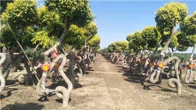 10月31日,走进安平县北郝村彭计超的草书盆景基地,禁不住让记者眼前一亮。这里培育着30亩的草书盆景树,许多树已经上盆,粗的干径达到七八厘米,“福”、“寿”、“比”、“南”、“山”等字型盆景居多,字体潇洒,飘逸,树与字融为一体,相得益彰,流露出一种风骨和神韵。这边,以白榆为砧木嫁接的高大中华金叶榆盆景,可谓基地的“形象代言人”,树冠被制作成华盖和元宝形状,树干则呈“福”字型,体态优美而高雅;那边,由99棵草书盆景组成了一组大型“福”字,其中3棵杏树为福字的“点”,另有12棵金叶榆和84棵桃树,这些树仅半人来高,但很是精致。
