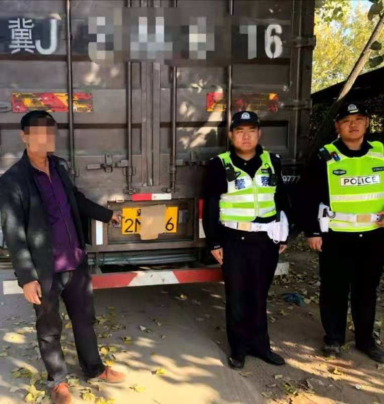 当天上午9时许,深州交警大队城区中队民警在辖区恒诚路巡逻时,发现一辆重型仓栅式货车车牌被纸壳遮挡,遂要求驾驶人靠边停车,接受检查。