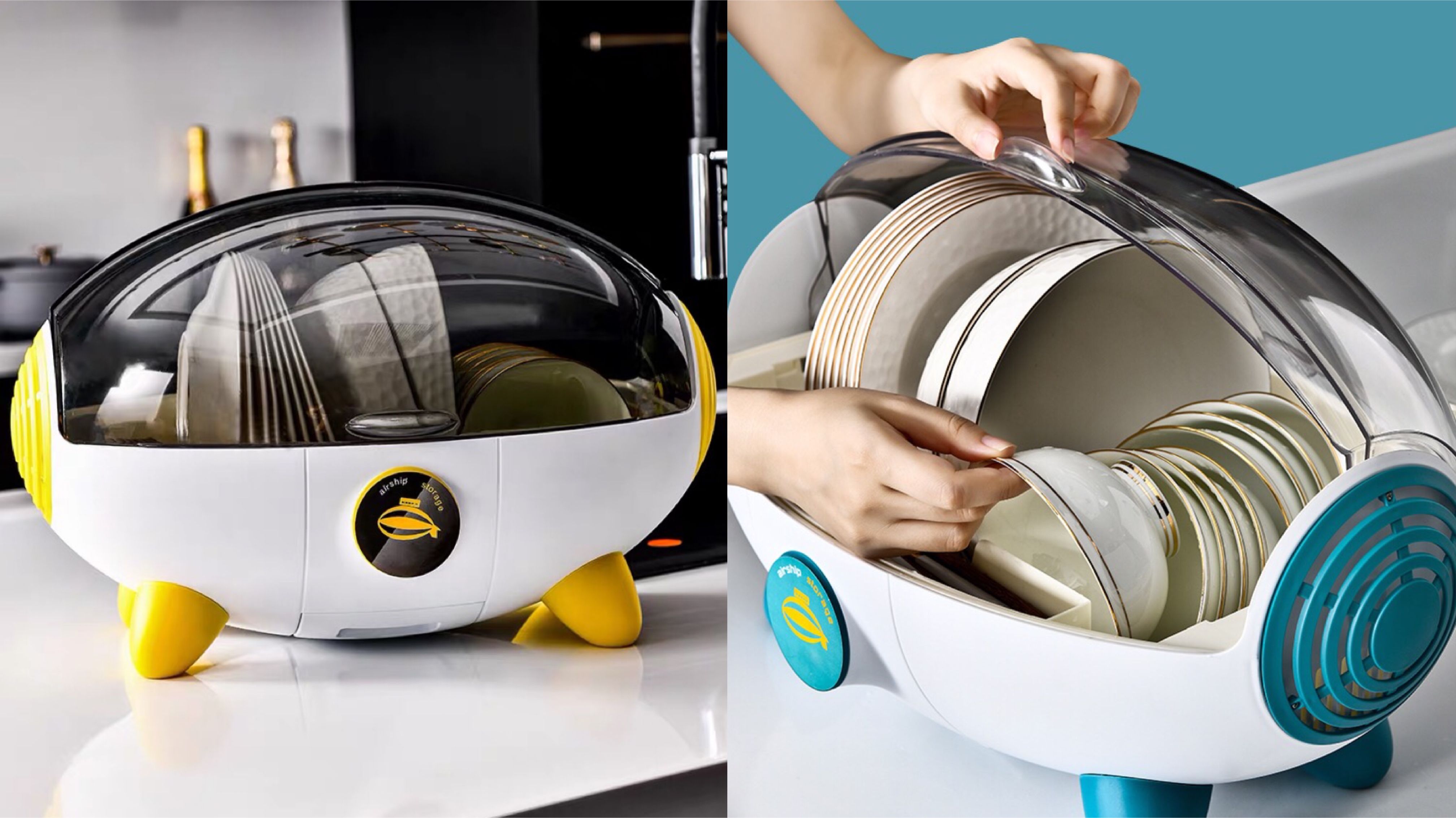 飞艇的外形,从颜值上就抓住了很多人的心。大容量的收纳空间,完全告别了以前碗盘叠放的方式,细分的餐碟专区、碗专区、勺子专区和筷子专区井然有序,两侧都可掀起的透明翻盖防尘防蚊虫,拿取也不受限制。条形沥水孔让积水迅速排出,底部可抽出的积水盘,让漏出的水渍不会弄湿台面。