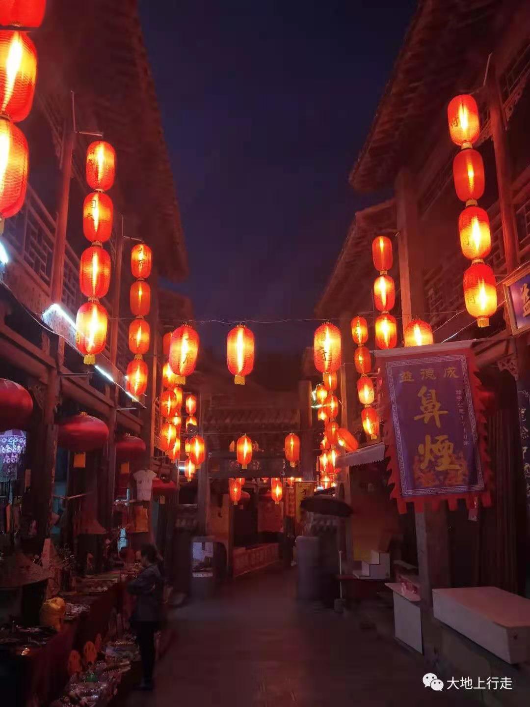 夜幕降临了,一盏盏红灯笼亮了起来,照得整条小街一片火红。对面山坡上有一小片建筑高高的,灯火辉煌,被四周山色的昏暗和幽静凸显得天宫一般,后来才知道那是西山院。