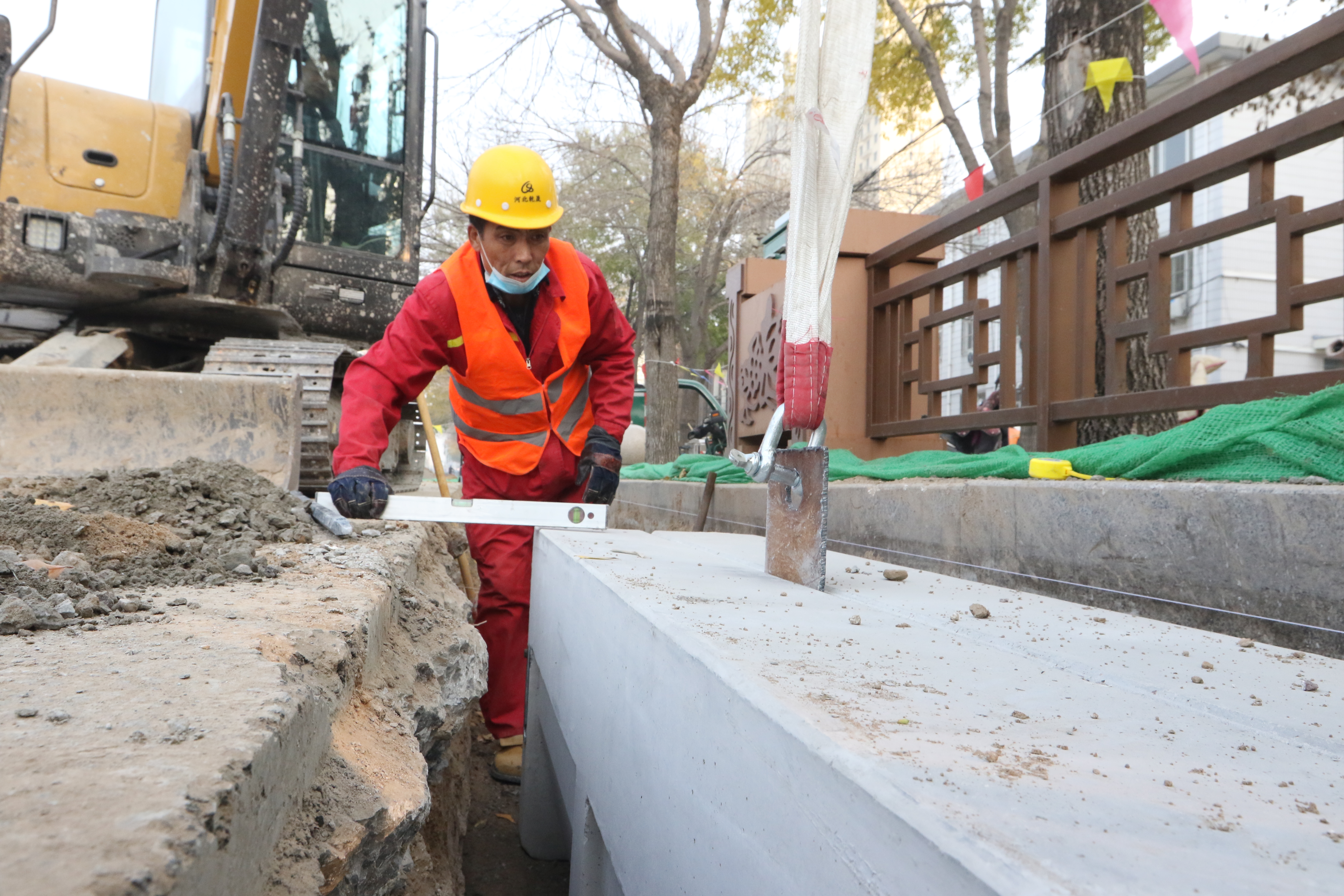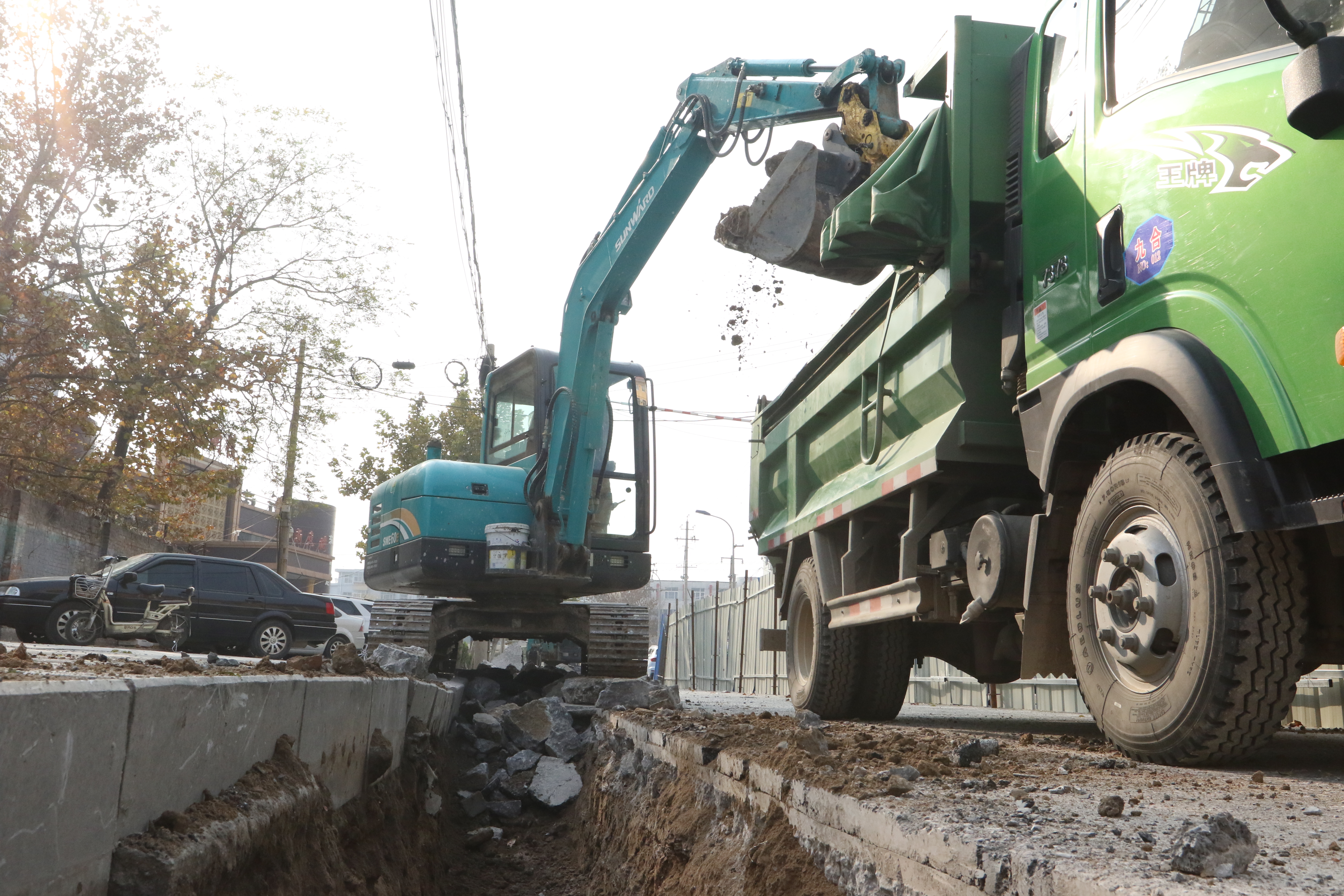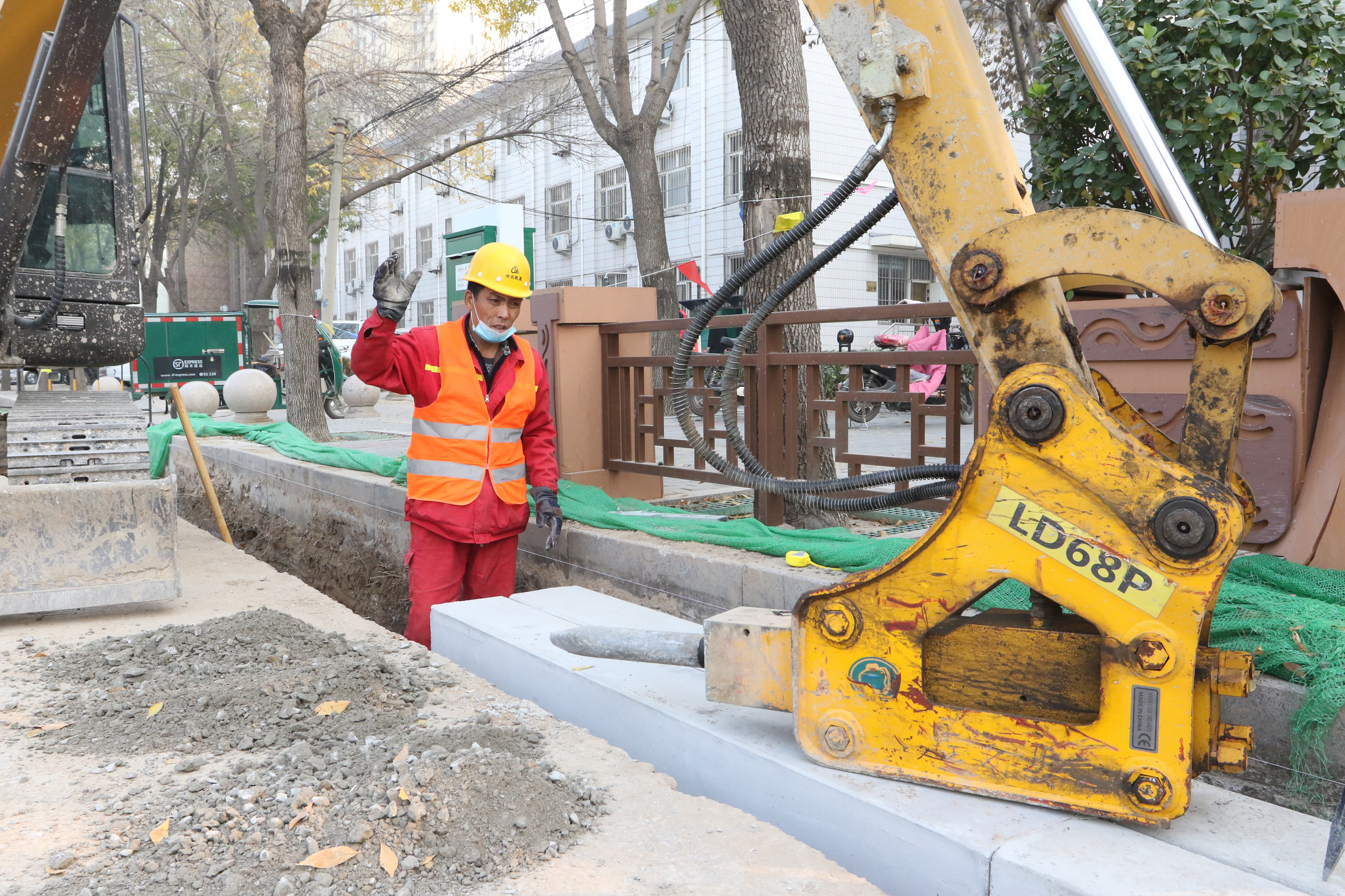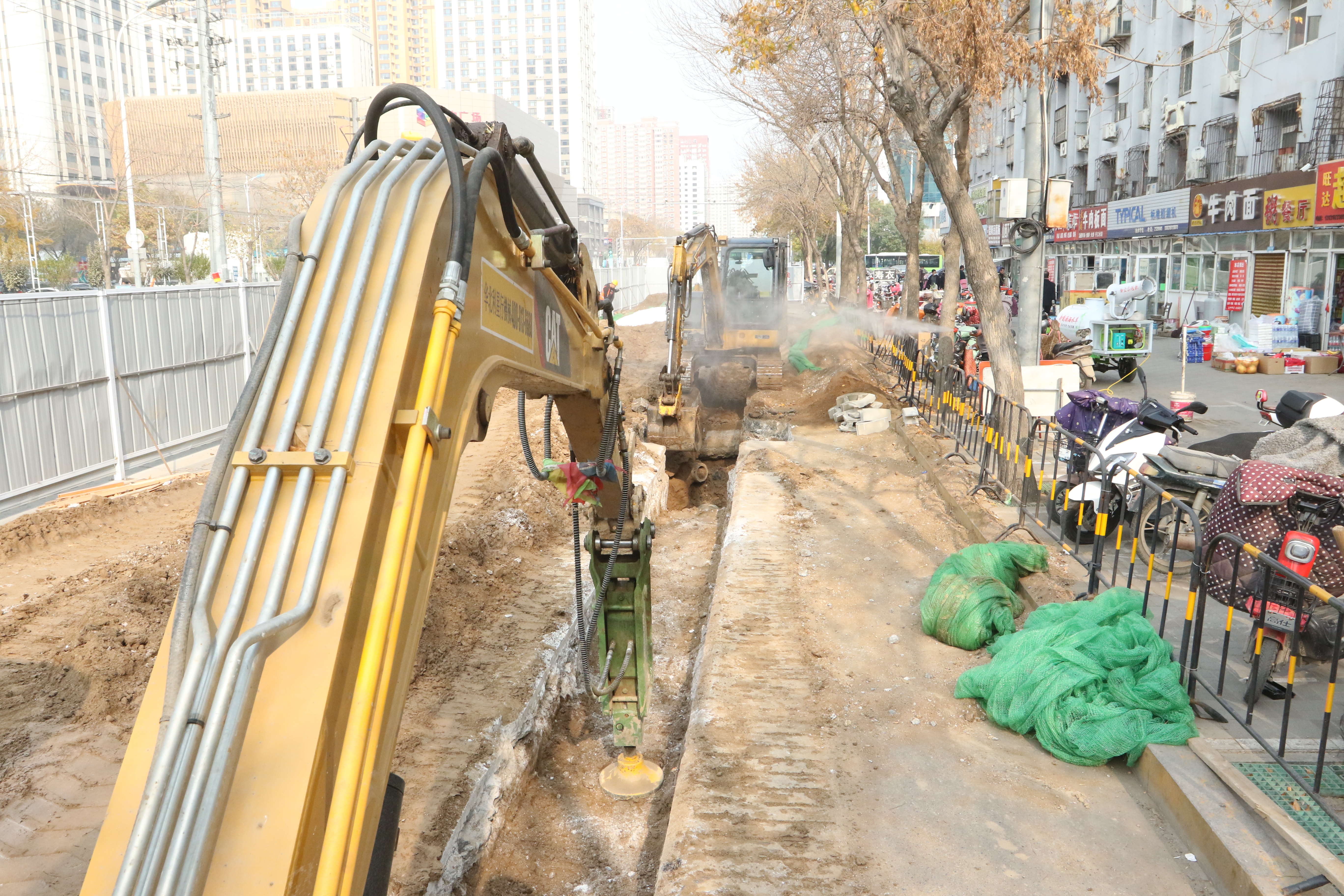 施工人员在报社街进行开沟作业。