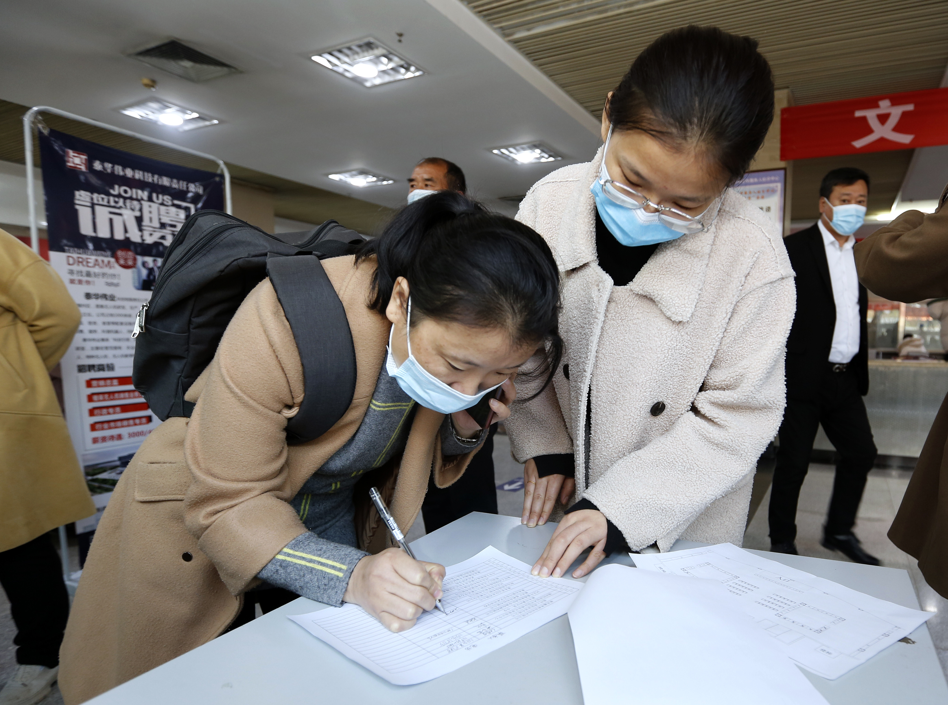 求职者正在填写应聘表。