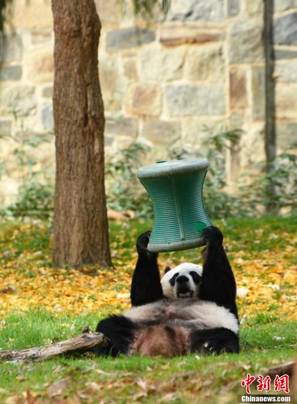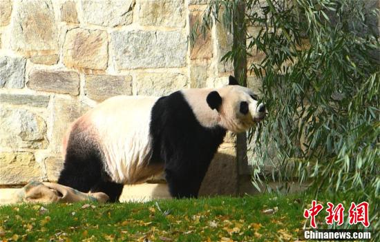 当地时间11月23日,美国华盛顿国家动物园宣布,为旅美大熊猫“美香”所生的雄性幼崽命名“小奇迹”。图为22日“美香”在大熊猫馆的画面。