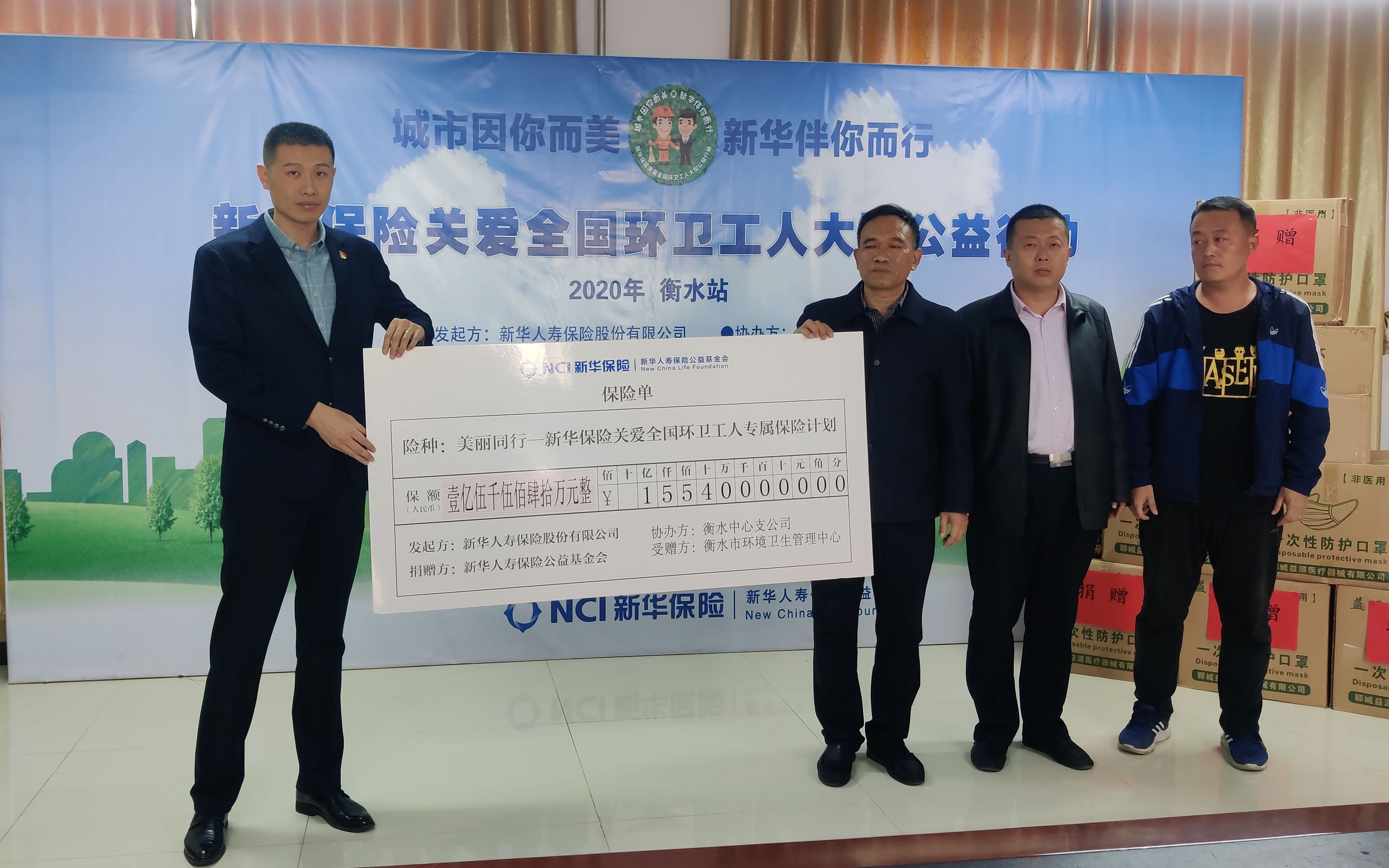 为践行“为社会增添和谐安宁力量”的企业使命,近日,“城市因你而美 新华伴你而行——新华保险关爱全国环卫工人大型公益行动”衡水站捐赠仪式在桃城区环境卫生管理中心举行。本次捐赠由新华保险通过其发起设立的新华人寿保险公益基金会这一专业公益平台实施,新华人寿保险公益基金会向桃城区1554名环卫工人捐赠人身意外伤害保险,合计捐赠保额15540万元。