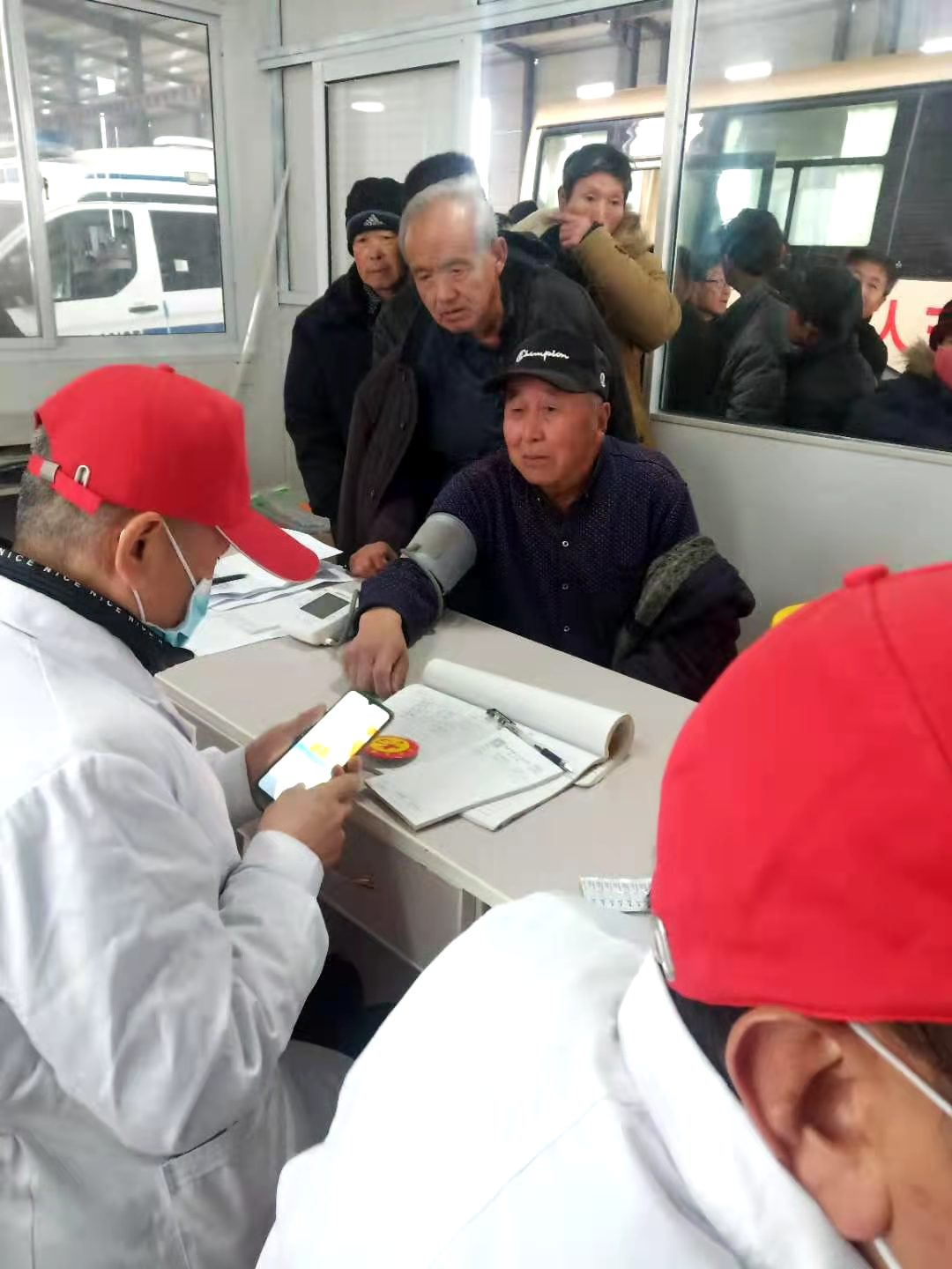 11月25日,阜城县正丰合作社热闹非凡,应合作社邀请,来自衡水市第三人民医院的医生,正在为正丰合作社的社员送上包括B超、心电图和测血糖、血压等检查项目的免费体检“套餐”。