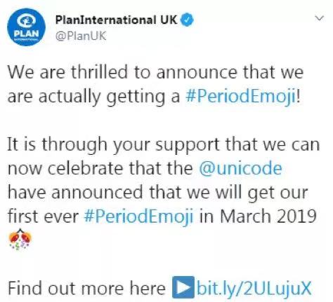 月经表情上线后,全球妇女权利慈善机构英国国际计划组织发布的公告。