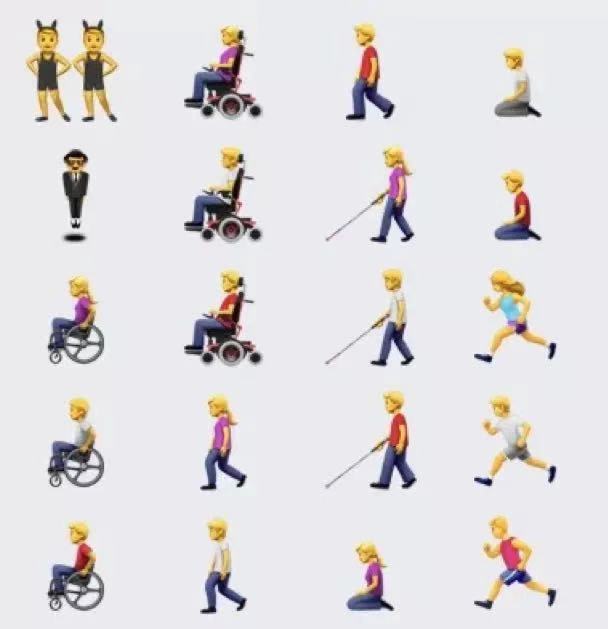另一方面,2019年版本的emoji还加入了不同性别身障人士的表情。尽管涵盖的身体障碍种类有限,但至少是个积极的开始。此外格外值得注意的是,更新中添加了两种不同类型的服务券,金色的拉布拉多是导盲巡回犬,而身穿红背心的黑色狗狗是可以帮助癫痫等隐藏疾病患者发出预警的服务犬。