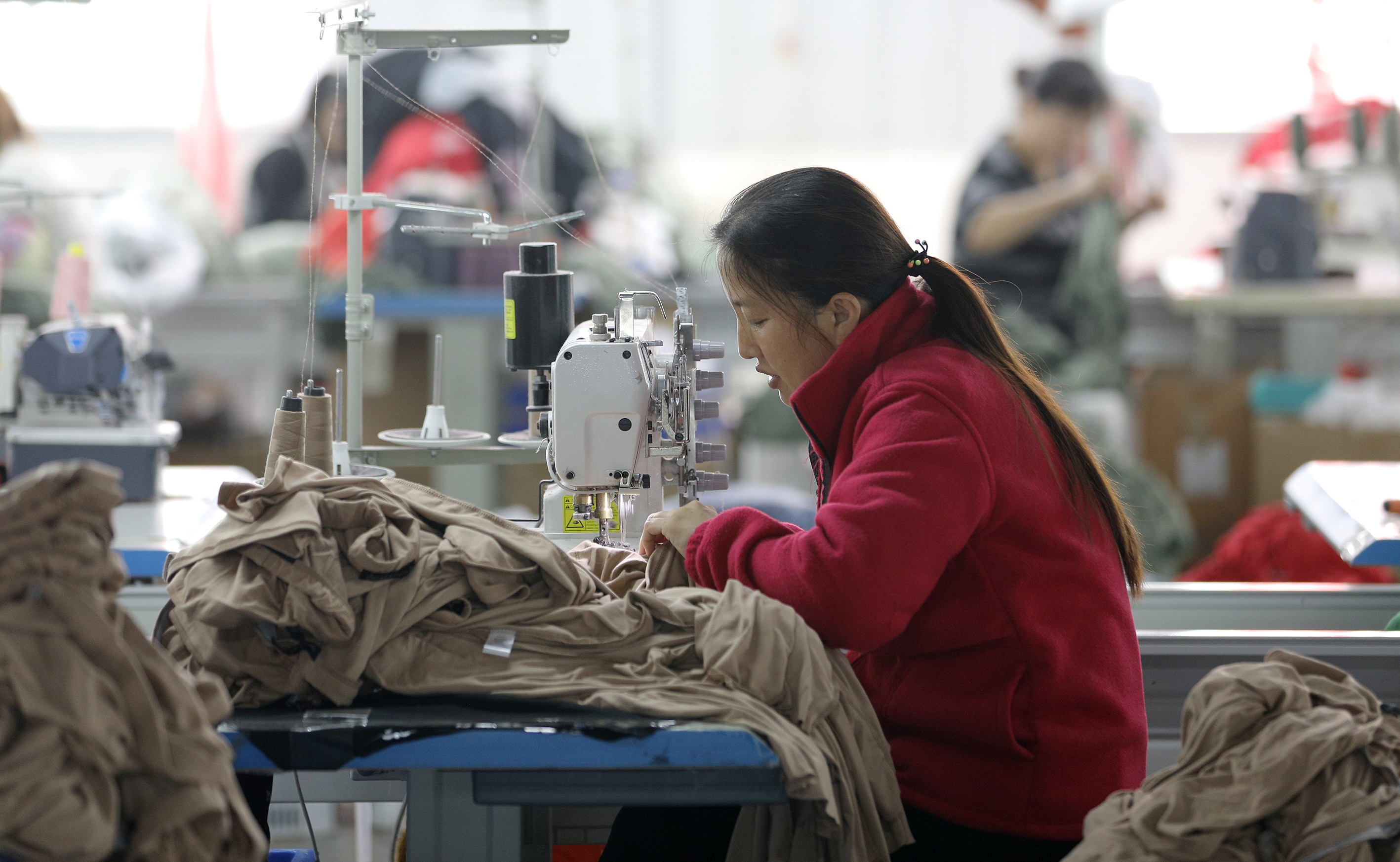 河北柯朗服饰有限公司工人正在赶制服装。
