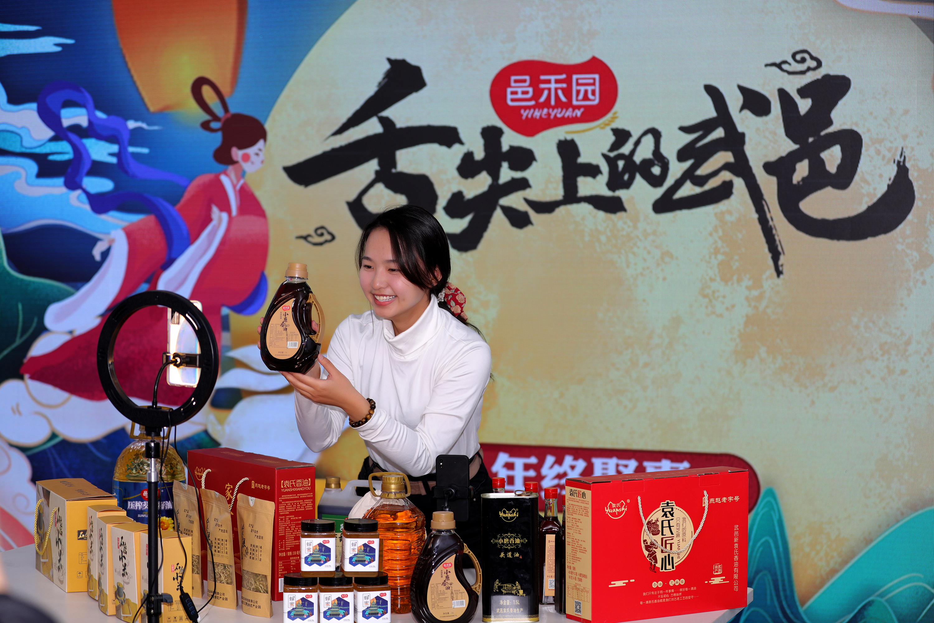 “双十二”临近,在武邑县电商服务中心,员工直播销售当地特产。