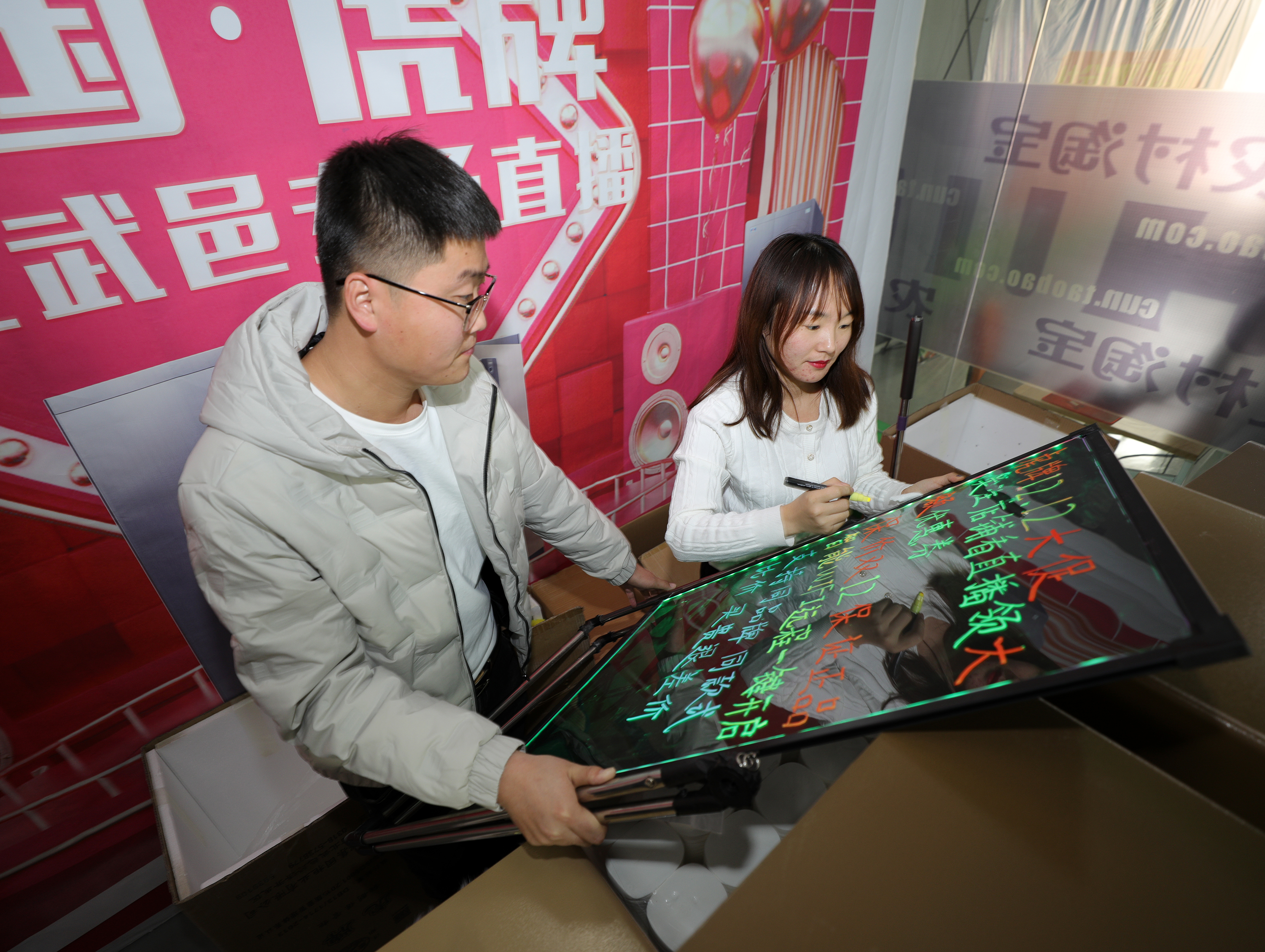 “双十二”临近,武邑县电商服务中心工作人员正在精心布置直播间。