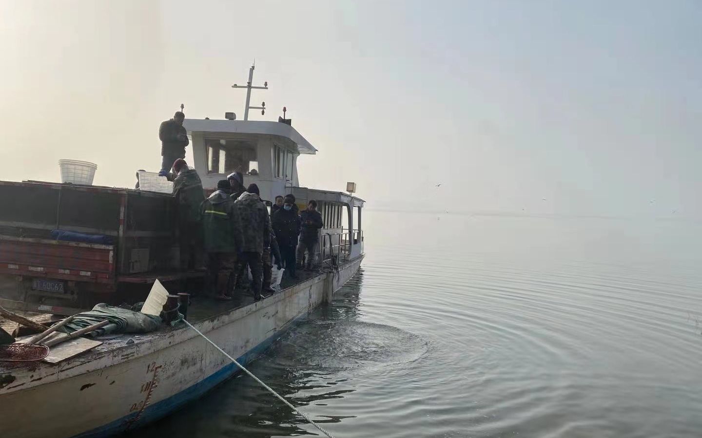 活动前,滨湖新区综合执法局执法队员对放流水域进行了检查清理,并安排船只做好相关巡护工作。上午8时许,在河北省监督验收组领导专家的监督指导下,衡水市农业农村局正式开始了此次增殖放流活动。在雾气蔼蔼的衡水湖面上,一只只水鸟在空中盘旋,现场,一车车装满了鱼苗的运输车辆在工作人员的指挥下,相继进入码头,驶入放流船上。放流人员找准了放流位置后,便打开车厢,将一筐筐鲜活的鱼苗沿船沿倒入湖中。一条条已经足有十几厘米长的小鱼一接触水面,便一个猛子潜入湖中,没了踪影。