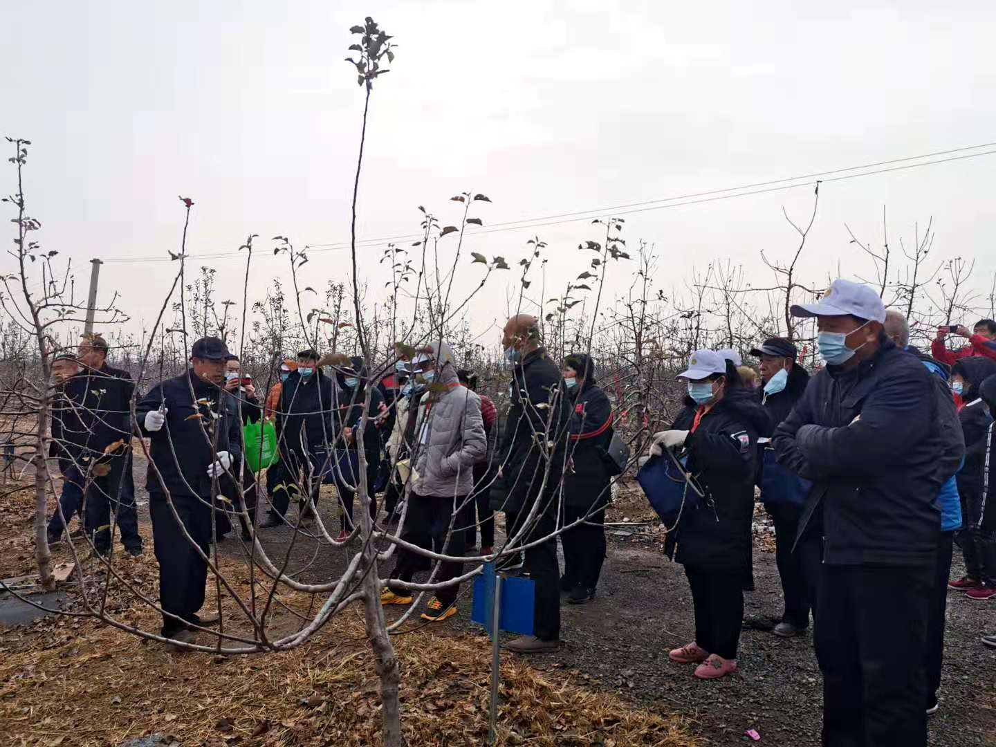 12月2日,寒风凛冽,枣强县加会镇扈加会村苹果种植园内却一派热火,第四期高素质农民培训班的学员们正围在一起,认真听老师讲解果树冬季剪枝、管护相关知识。