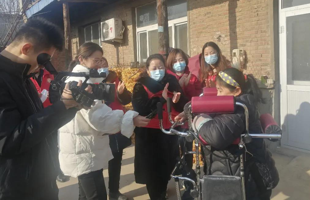 12月5日是国际志愿者日。这天,武强县画乡志愿者协会联合河北电视台农民频道《非常关注》栏目及武强县的爱心企业到该县东孙庄镇东五祖寺村看望慰问双残家庭,送去总价值4500余元的慰问品和慰问金,帮助小女孩周梦晴圆了让妈妈站起来的梦想。