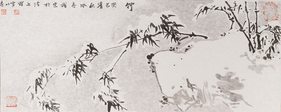 说起赏雪,张岱的《湖心亭看雪》可谓较具代表性的一篇。“雾凇沆砀,天与云与山与水,上下一白。湖上影子,惟长堤一痕、湖心亭一点、与余舟一芥、舟中人两三粒而已。”作者运用白描的手法,生动地写出天空、云层、湖水之间白茫茫浑然难辨的景象。双目所及之处,不过一道长堤的痕迹,一点湖心亭的轮廓,还有一叶扁舟而已。