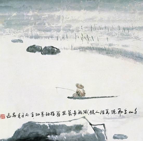陈忠志《独钓寒江雪》。来自人民网书画频道“人民美术馆”